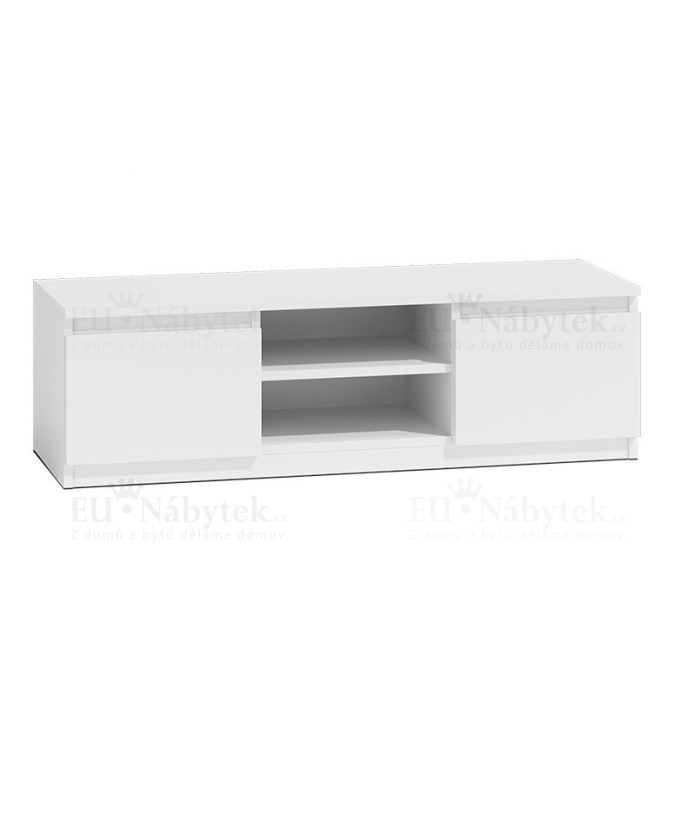 Praktický RTV stolek vyroben z kvalitního lamina odpovídající současnému designu. Hrany jsou ukončeny PVC páskou, která zaručuje dlouhou životnost. RTV stolek disponuje dvěmi skříňkami a praktickou poličkou. V provedení bílá mat. Rozměry jsou (ŠxVxH) 120x36x40cm.