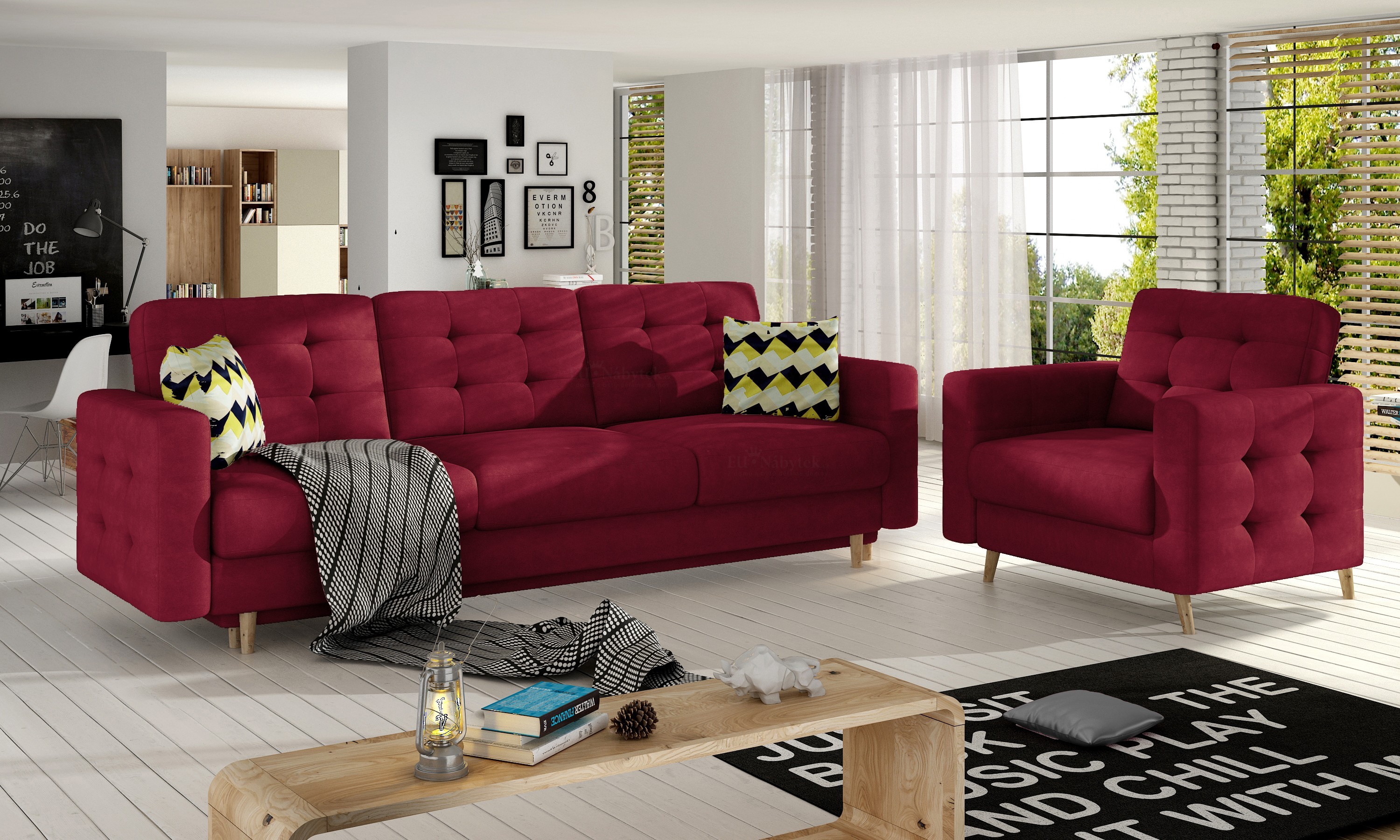 Pokud jste ve fázi zařizování interiéru a sníte o tom, že obývací pokoj bude synonymem pohodlí, rozhodněte se pro sestavu Asda. Prostorná pohovka s křeslem zaujme jak estetikou, tak komfortem který poskytují.Sestava je v provedení, který vyhovuje modernímu, retro a skandinávskému stylu. Hluboká sedadla, vysoká opěradla a loketní opěrky, stylové, klasické dřevěné šikmé nohy a elegantní prošívání - to vše dělá jedinečnou atmosféru vašeho interiéru a poskytne maximální pohodlí při relaxaci doma. Z řady Asda lze také zakoupit rohovou sedací soupravu, soupravu do tvaru U nebo pohovku. Křeslo je možno dokoupit i jednotlivě. Sedačka je čalouněná eko kůži Soft 33. Další barevné varianty naleznete na našich stránkách.