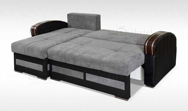 Sedací souprava KETRIN je ideální pro ty, kteří ocení komfort a pohodlí. Tkanina vysoké kvality, masivní pevná kostra, bonellové pružiny s kvalitní PUR pěnou zaručují komfortní posezení. Spací plocha po rozložení je 130 x 204 cm. Sedací souprava má úložný prostor. Velkou předností jsou ozdobné područky. Je čalouněná šedou látkou PRIMO 88 a černou ekokůží. Sedačka je univerzální.