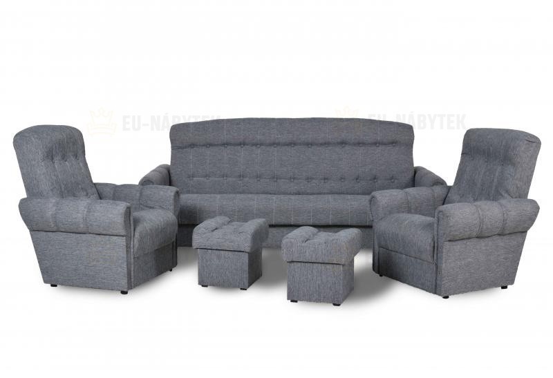 Pohodlná a prostorově nenáročná sedací souprava Arnold, která garantuje vysokou kvalitu provedení a dlouhou životnost. Sedací souprava má jednoduchý systém rozkládání včetně úložného prostoru. Pohodlné sezení zaručuje vysokoelastická PUR pěna T30. Souprava se skládá ze dvou křesel (77x70x94cm), dvou taburetů (36x36x36cm) a pohovky (213x85x86cm), která po rozložení disponuje spací plochou 117x184cm. Sestava je čalouněná látkou Sawana 05. V nabídce i v jiném barevném provedení.