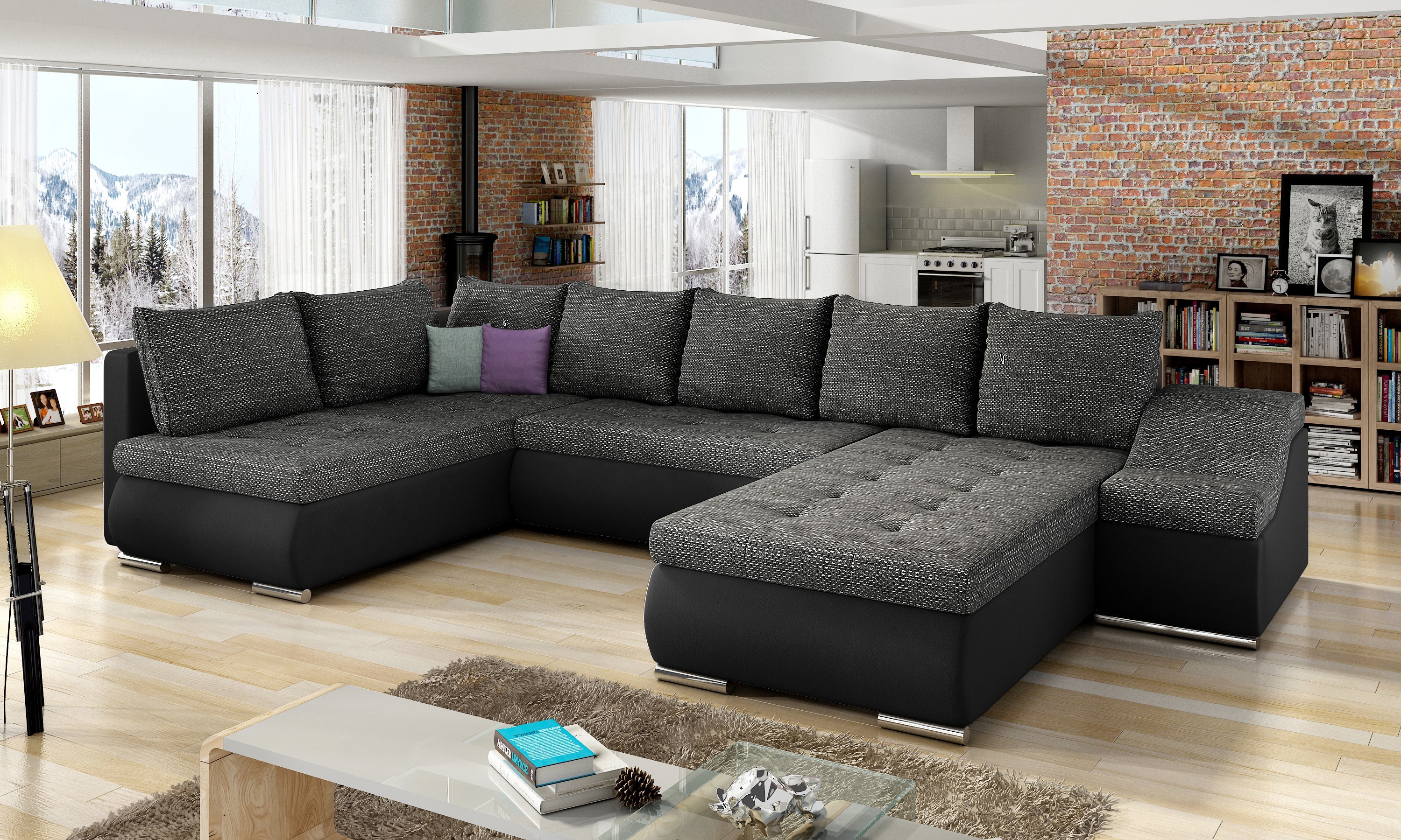Netradiční prostorná sedačka TORONTO U s úložným prostorem a rozkladem pro příležitostné spaní. Po rozložení vzniká plocha na spaní 295 x 120 cm. Sedací plocha je vyplněna PUR pěnou a pružinami Faliste, kostra sedačky je v kombinaci masivního dřeva a dřevotřísky Barevné provedení - látka šedá soro 93 a světle šedá látka soro 83. Dodávano v demontu, 4 ks. Na hlavním obrázku je pravý roh.