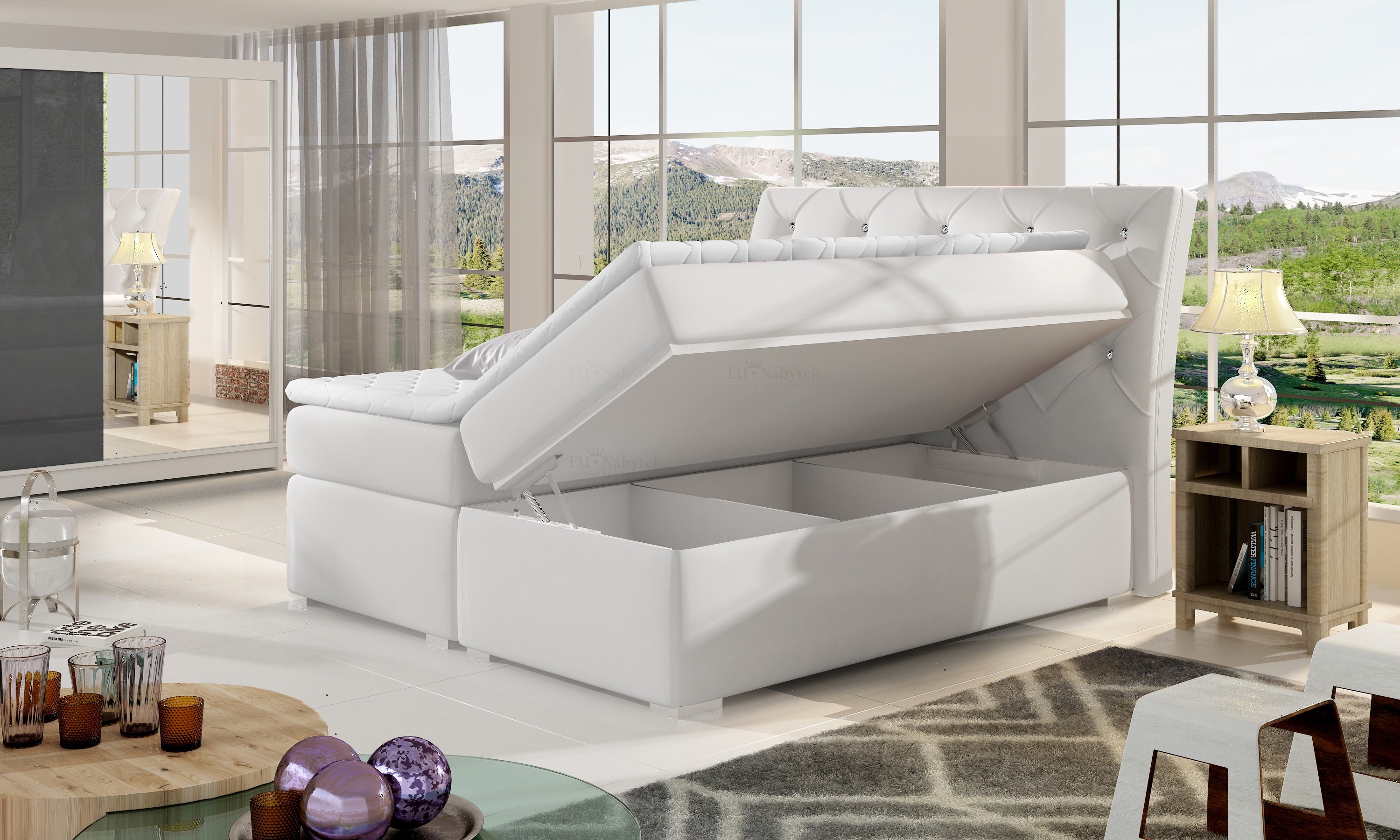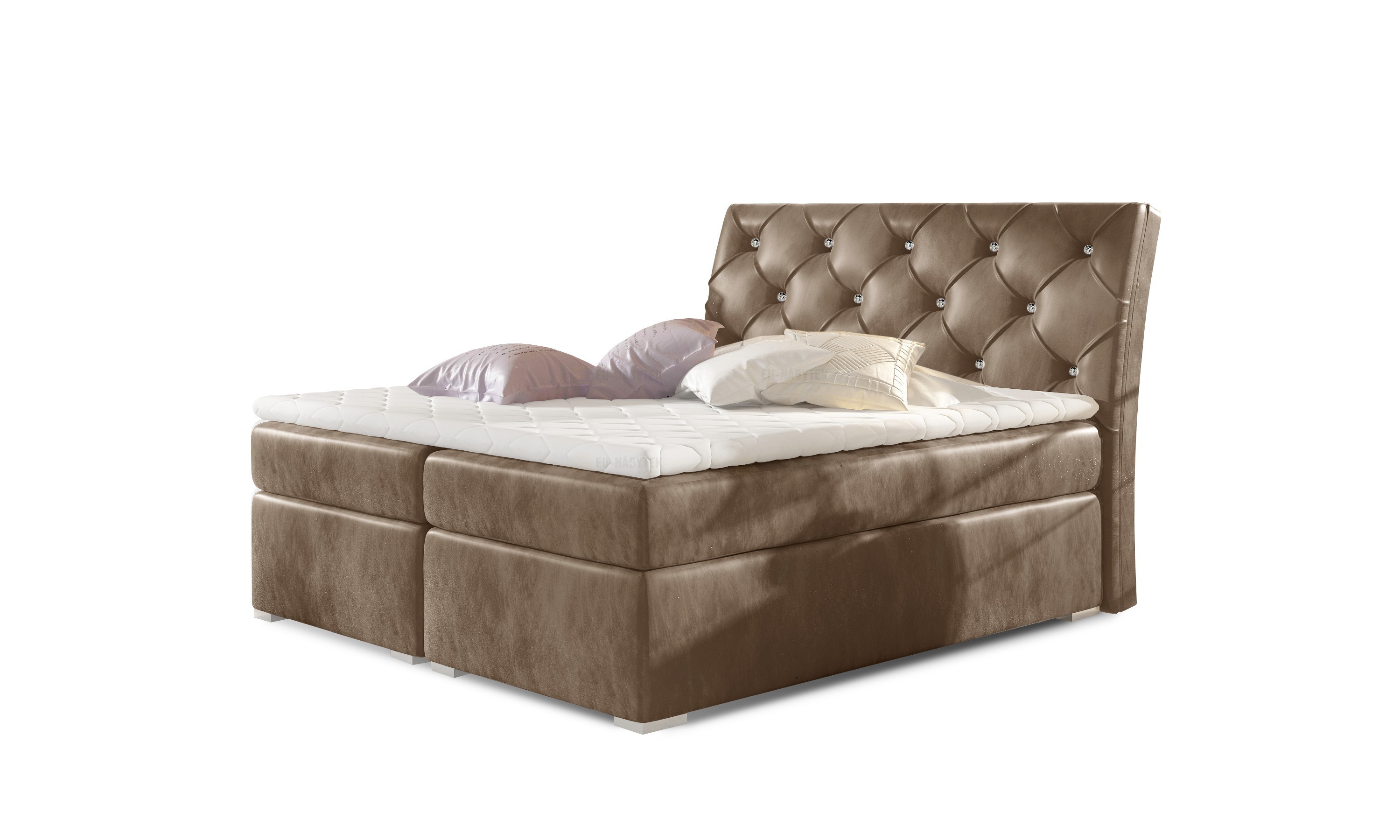 Kontinentální postel BOXSPRING vyniká svým jedinečným vzhledem. Boxspring je postelový systém, který můžete znát ze zahraničí či luxusních hotelů. Tato postel je nejen specifická svým vysokým násedem, ale hlavně díky svému složení odlišná od klasických postelí. Základním prvkem této postele Boxspring je spodní 20 cm devíti zónová pružinová matrace v rámu, která slouží jako prevence ortopedických vad páteře a ventilační podklad horní vyrovnávací tenké matrace - topperu. Toto spojení garantuje spokojenost jak z hlediska hygienického, tak i ortopedického a relaxačního. Postel také disponuje velkým úložným prostorem. Zajímavým prvkem je zdobené čelo postele. V nabídce v mnoha barvách i rozměrech, které naleznete níže na stránce. Dodávano v demontu. Postel je čalouněná černou ekokůží Soft 11.