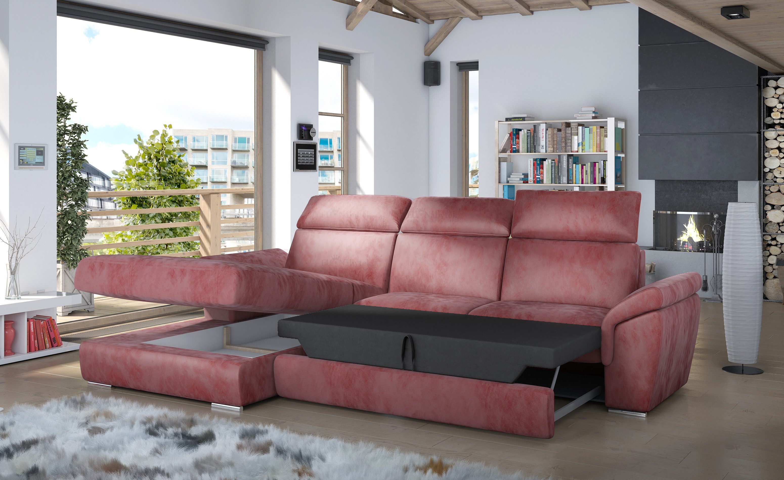 Sedací souprava TREND o rozměrech 272x212x100cm je ideální pro ty, kteří ocení komfort a pohodlí. Tkanina vysoké kvality, masivní pevná kostra, pružinové jádro s kvalitní PUR pěnou zaručují komfortní posezení. Plocha po rozložení je 127x210cm. Šířka bočního otomanu je 98cm. Sedací souprava disponuje i úložným prostorem, který se nachází v boční části sedačky. Velkou předností jsou polohovatelné záhlavníky. Je čalouněná látkou Monolith 77. V nabídce v několika barevných provedeních, které naleznete na stránce.