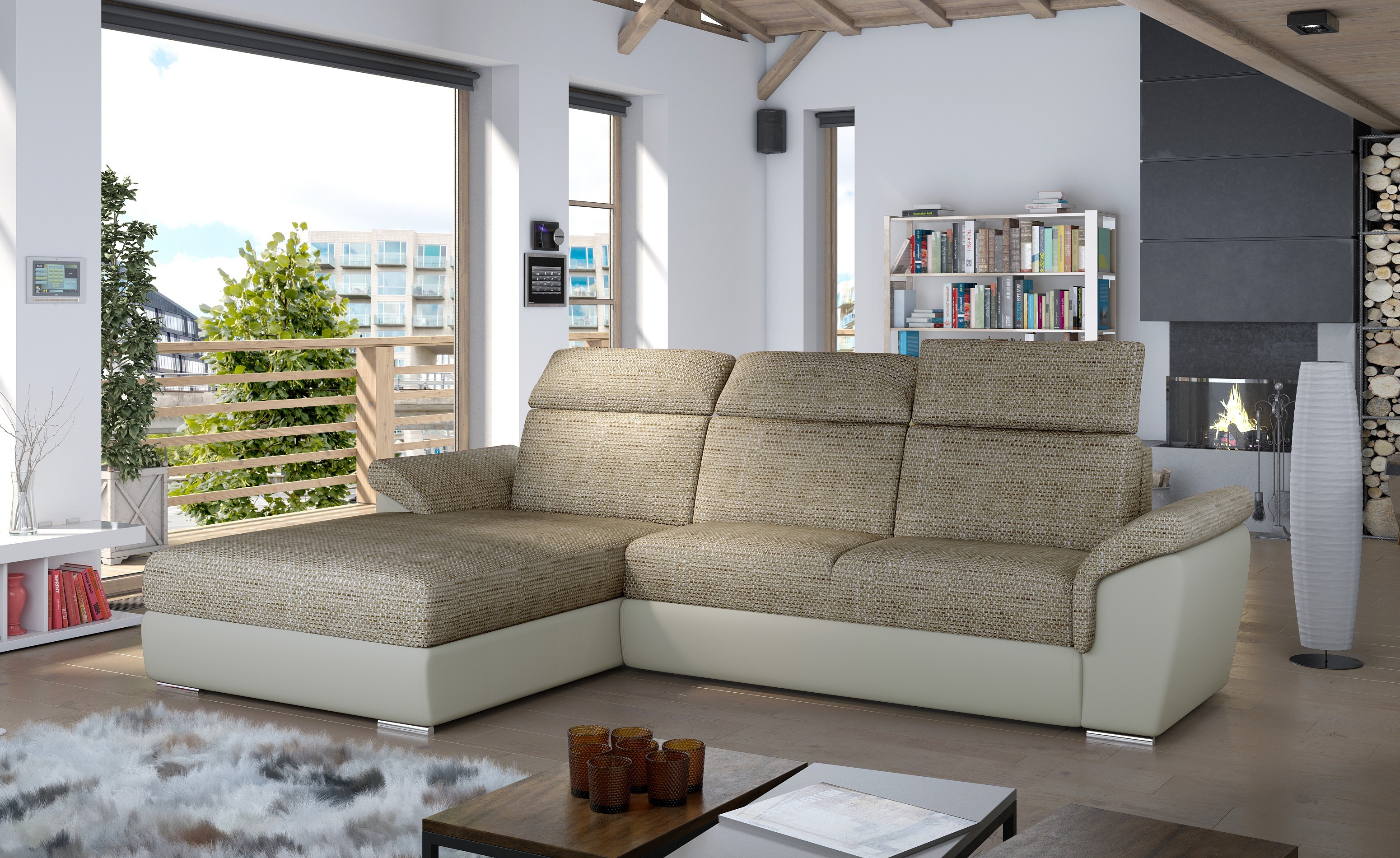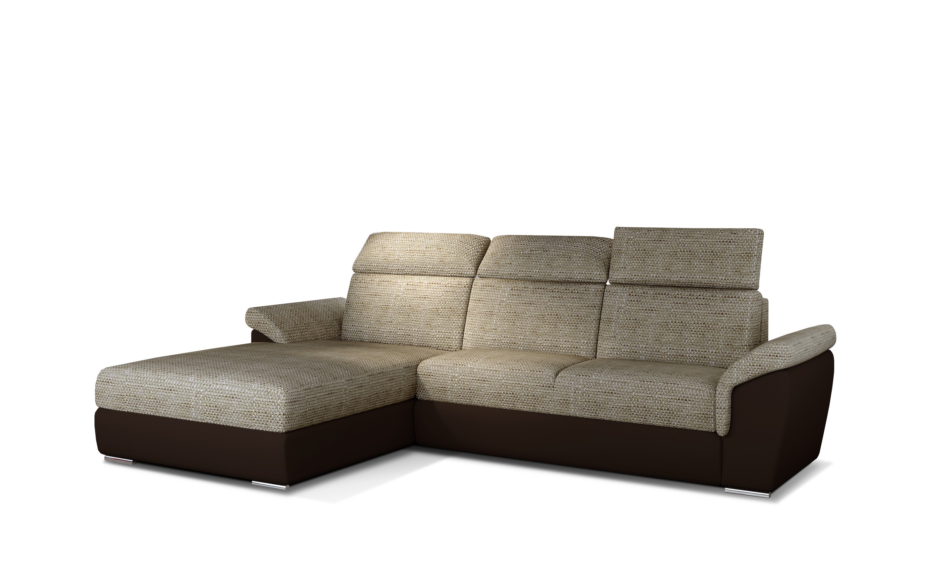 Sedací souprava TREND o rozměrech 272x212x100cm je ideální pro ty, kteří ocení komfort a pohodlí. Tkanina vysoké kvality, masivní pevná kostra, pružinové jádro s kvalitní PUR pěnou zaručují komfortní posezení. Plocha po rozložení je 127x210cm. Šířka bočního otomanu je 98cm. Sedací souprava disponuje i úložným prostorem, který se nachází v boční části sedačky. Velkou předností jsou polohovatelné záhlavníky. Je čalouněná látkou Sawana 05 a ekokůží Soft 17. V nabídce v několika barevných provedeních, které naleznete na stránce.