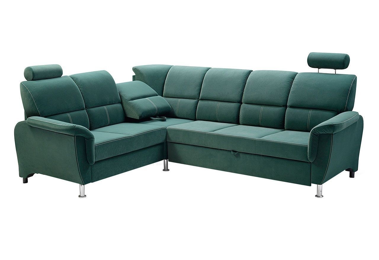 Rozkládací rohová sedačka Dino je vyrobena v nadčasovém designu, který se hodí do každého interiéru. Spojuje v sobě 2 důležité prvky, které nesmí chybět žádné sedací soupravě. Jsou to pohodlí a praktičnost. Praktickou stránkou této sedací soupravy je možnost rozložení pro příležitostné přespání návštěvy a nepostradatelný úložný prostor, který využijete např. na lůžkoviny. Výplň sedáků tvoří kombinace pružin falliste s kvalitní PUR pěnou. Toto spojení zaručuje pohodlí při odpočinku, či posezení s rodinou a přáteli. Sedací souprava je potažena látkou i ze zadní strany a proto ji můžete umístit i do prostoru. Sedací soupravu nabízíme v levém i pravém provedení, které rozzáří obývací pokoj. Tkanina Velva 08.