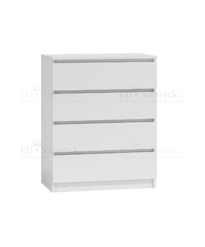 Moderní komoda vyrobena z kvalitního lamina řešená bezúchytkovým systémem. Hrany jsou zakončeny PVC páskou, která zaručuje dlouhou životnost. Rozměry (ŠxVxH) 70x95,5x40cm. Provedení bílá mat. V nabídce i v jiném barevném provedení, které naleznete níže na stránce.