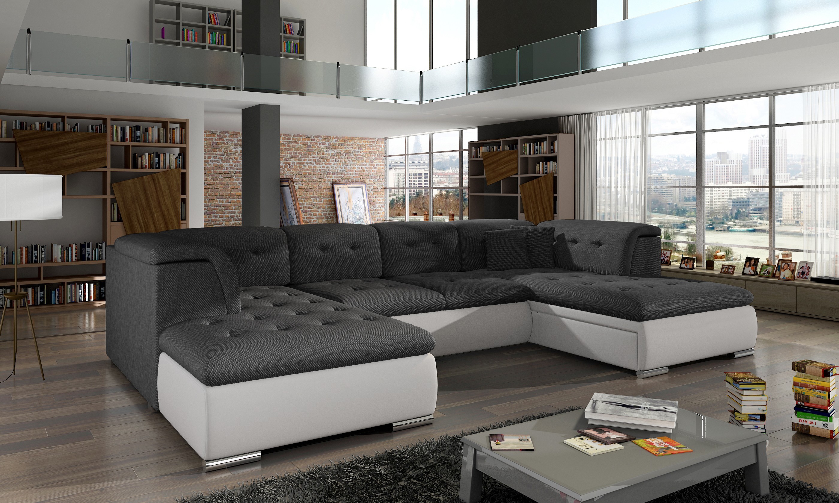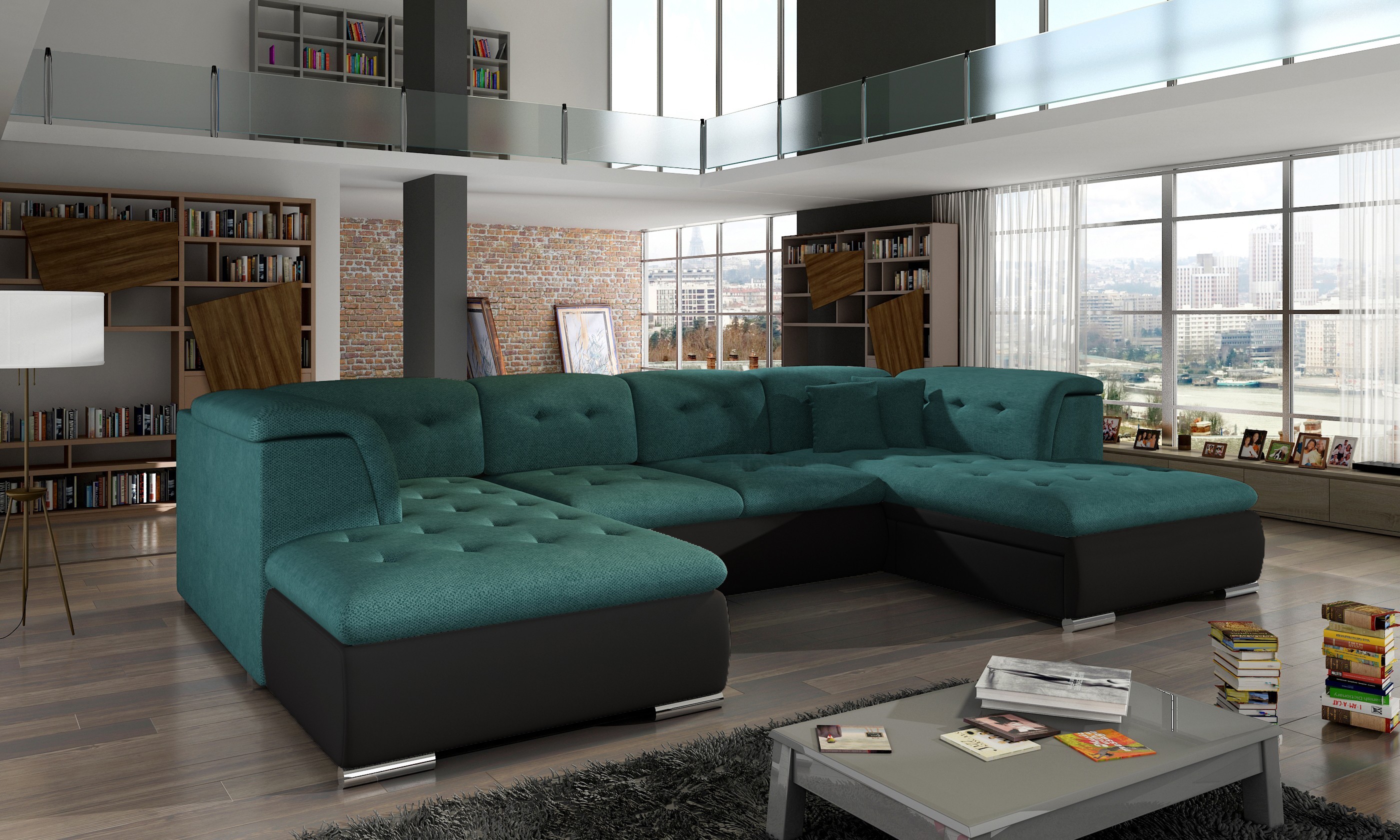 Rozkládací rohová sedačka SANTIAGO s velkoryse řešeným prostorem k sezení. Sedačka je opravdu rozměrná, s délkou téměř 4 m, je vhodná do prostornějších pokojů. Má také úložný prostor a disponuje rozkládacím systémem, díky kterému se plocha na spaní zvětší na 145 x 282 cm. Díky dvoum velkým otomanům je vhodným řešením pro velkou rodinu ale i pro ty co mají rádi opravdové pohodlí. Sedací souprava je čalouněna látkou Berlin 02 a eko kůží Madryt 1100.