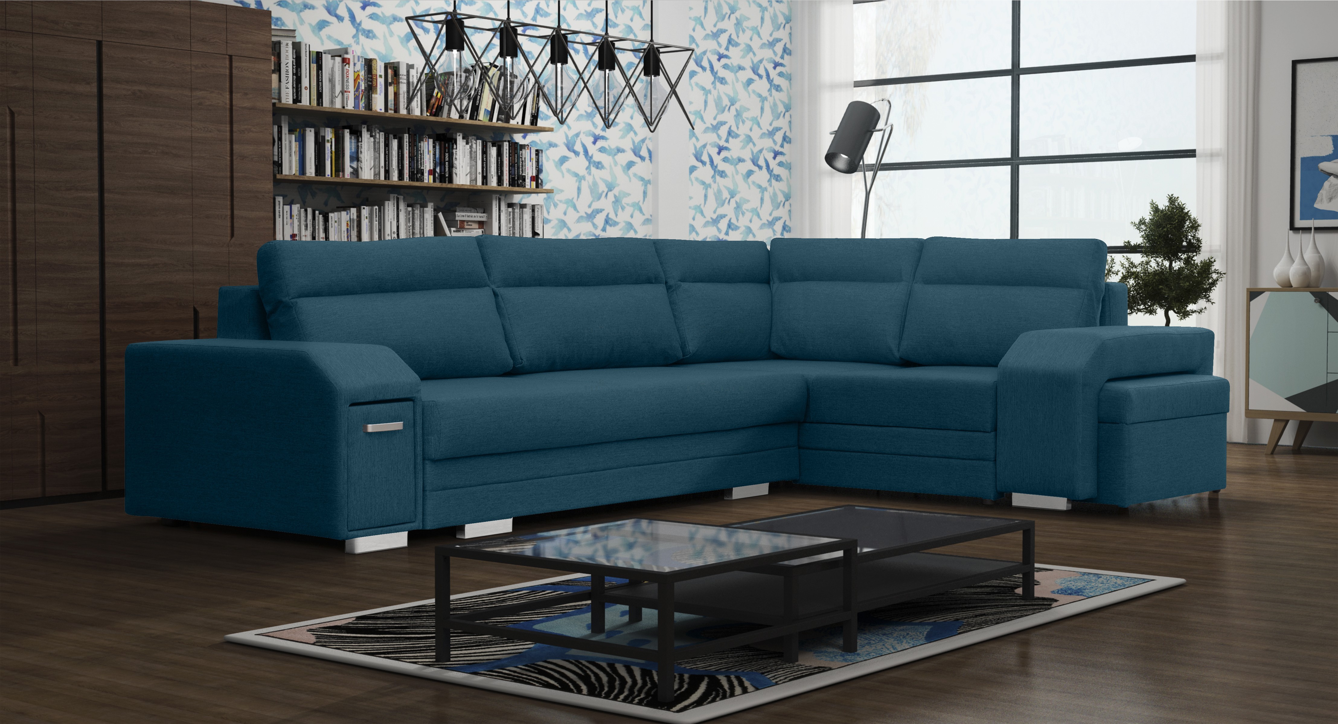 Rozkládací sedací souprava Soler v moderním designu. Pohodlné sezení zaručují pružiny faliste společně s PUR pěnou T30. Plocha na spaní 250x150cm umožňuje bezproblémové přespání. Velkou předností této sedačky je mnoho úložného prostoru, který se nachází v šuplíku pod područkou a v obou stranách sedačky. V ceně je i taburet, který má také úložný prostor. Polštáře mají odnímatelný potah, který tak lze snadno vyprat. Výhodou je čalounění zadní strany, proto je sedací souprava vhodná do prostoru. Čalouněná je látkou Malmo 85.