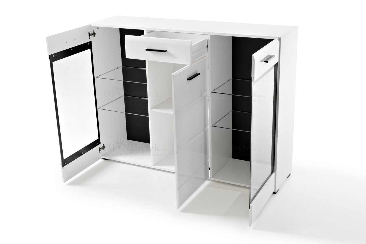 Komoda LAURA zdůrazňuje unikátní design nábytku. Stylová kompozice moderního nábytku zaručuje nejen reprezentativní zařízení daného interiéru, ale také i vysokou funkčnost, kterou ocení dokonce i nejnáročnější zákazníci. Rozměry jsou 150x112x41cm. Dodáváme v demontu. Níže na stránce naleznete další produkty z této kolekce.