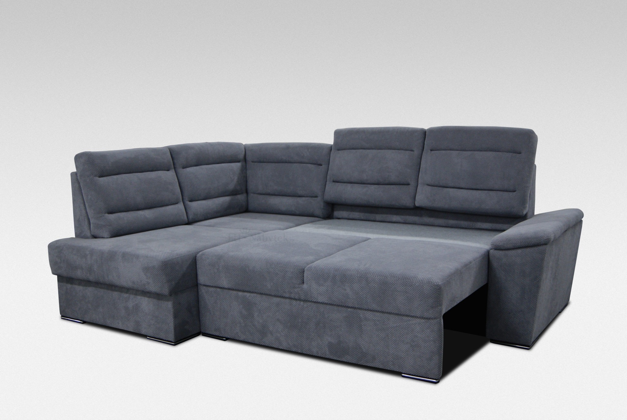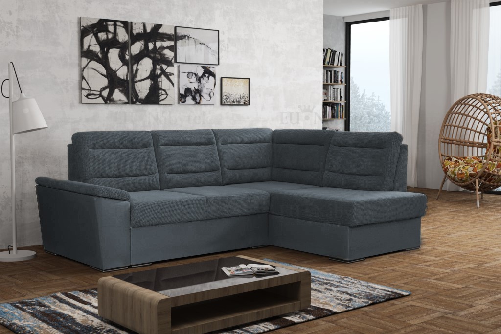 Rozkládací rohová sedačka s úložným prostorem a decentními chromovanými nožičkami. Po rozložení vznikne plocha na spaní 130x200cm. Dva druhy pružin (bonell a faliste) společně s PUR pěnou zaručují pohodlné sezení, sedačka má navíc velmi praktické opěrky s nastavitelnou výškou, kromě opěrek v rohu. Sedačka je čalouněná látkou Malmo 95 a Malmo 96.