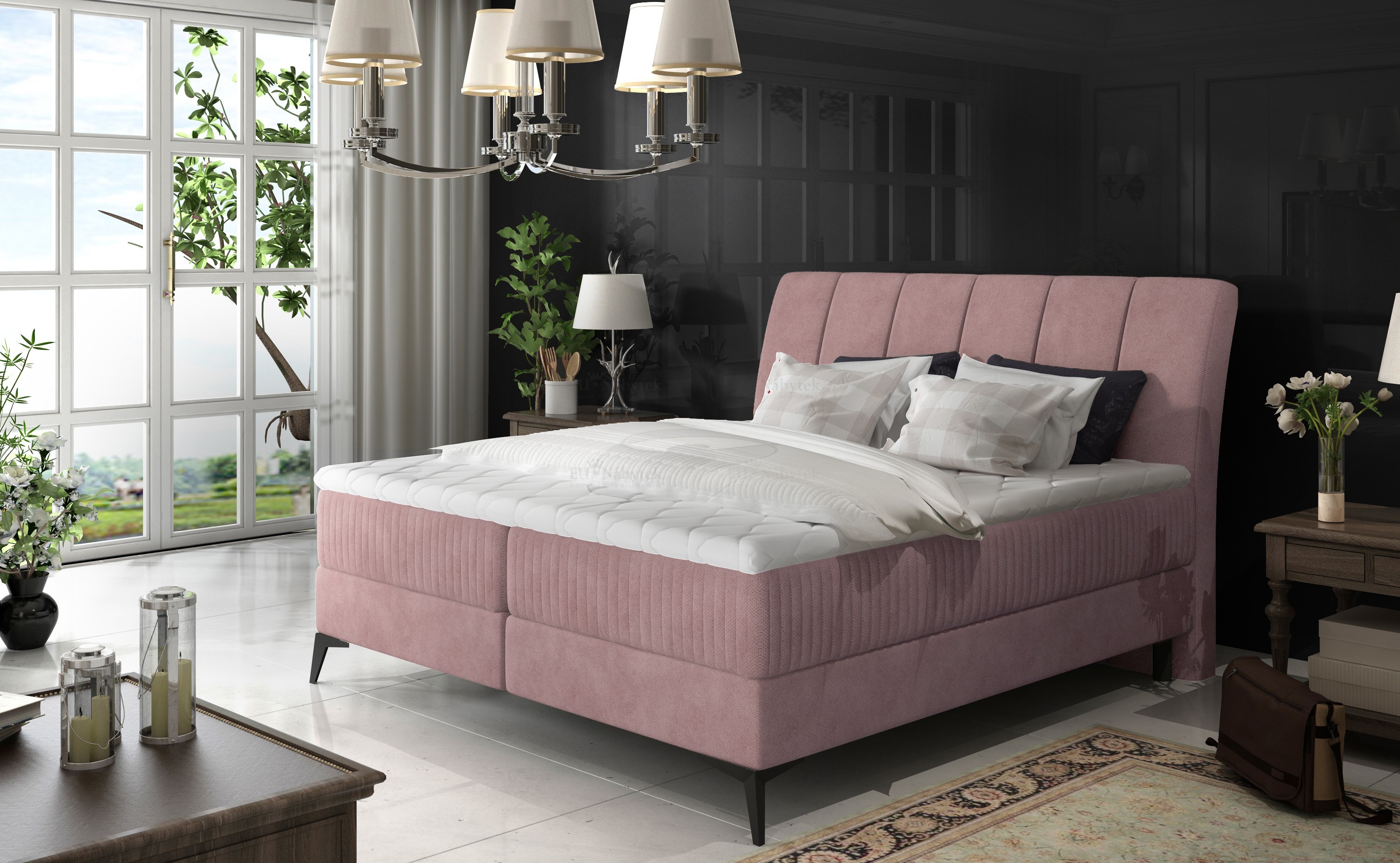 Kontinentální postel BOXSPRING vyniká svým jedinečným vzhledem. Boxspring je postelový systém, který můžete znát ze zahraničí či luxusních hotelů. Tato postel je nejen specifická svým vysokým násedem, ale hlavně díky svému složení odlišná od klasických postelí. Základním prvkem této postele Boxspring je spodní 20 cm devíti zónová pružinová (bonell) matrace v rámu, která slouží jako prevence ortopedických vad páteře a ventilační podklad horní vyrovnávací tenké matrace - topperu. Toto spojení garantuje spokojenost jak z hlediska hygienického, tak i ortopedického a relaxačního. Postel obsahuje úložný prostor (viz fotogalerie). Dodávano v demontu. Čalouněná je látkou Soro 61.