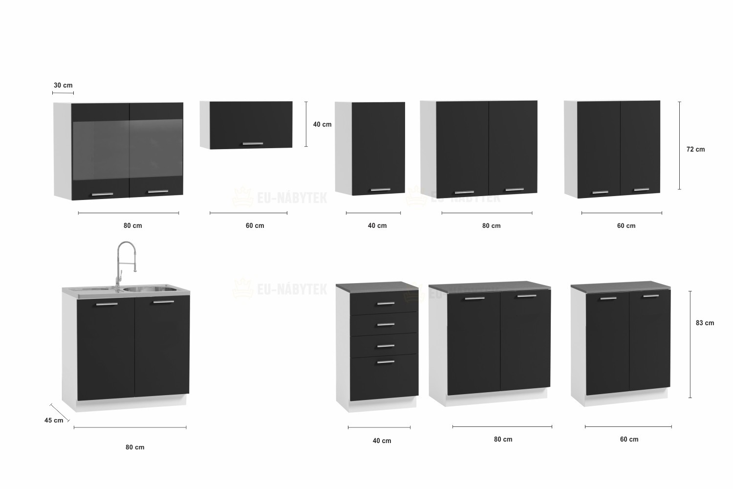 Moderní kuchyně vhodná i do panelákových bytů. Tato kuchyně je navržena tak, že skříňky se dají poskládat v libovolném pořadí. To vám umožní si sestavit kuchyni podle svých představ. Pracovní deska je dodávána v barvě šedá, která je dodávána vcelku 180cm (kromě skříňky na dřez). Korpus je v bílé barvě 18mm. Hrany jsou lemovány ABS páskou 0,6mm. Dvířka jsou vyrobena z kvalitní MDF 16 mm v barevném provedení dub sonoma. Sestava se skládá ze spodních skříněk - výška 82 (bez PD), hloubka 45, šířka 80/40/80/60 cm a vrchních skříněk - výška 72, hloubka 30, šířka 80/60/40/80/60 cm. Úchyty jsou plastové v šedé barvě. Spotřebiče, dřez a digestoř nejsou v ceně. Kuchyň nabízíme také v dalších barevných variantách, které naleznete níže na stránce. Možnost doobjednání dřezu. Dodáváme v demontovaném stavu.