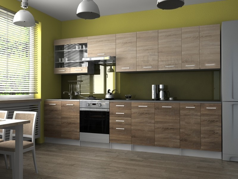Moderní kuchyně vhodná i do panelákových bytů. Tato kuchyně je navržena tak, že skříňky se dají poskládat v libovolném pořadí. To vám umožní si sestavit kuchyni podle svých představ. Pracovní deska je dodávána v barvě šedá, která je dodávána vcelku 180cm (kromě skříňky na dřez). Korpus je v bílé barvě 18mm. Hrany jsou lemovány ABS páskou 0,6mm. Dvířka jsou vyrobena z kvalitní MDF 16 mm v barevném provedení dub sonoma / tobacco. Sestava se skládá ze spodních skříněk - výška 82 (bez PD), hloubka 45, šířka 80/40/80/60 cm a vrchních skříněk - výška 72, hloubka 30, šířka 80/60/40/80/60 cm. Úchyty jsou plastové v šedé barvě. Spotřebiče, dřez a digestoř nejsou v ceně. Kuchyň nabízíme také v dalších barevných variantách, které naleznete níže na stránce. Možnost doobjednání dřezu. Dodáváme v demontovaném stavu.