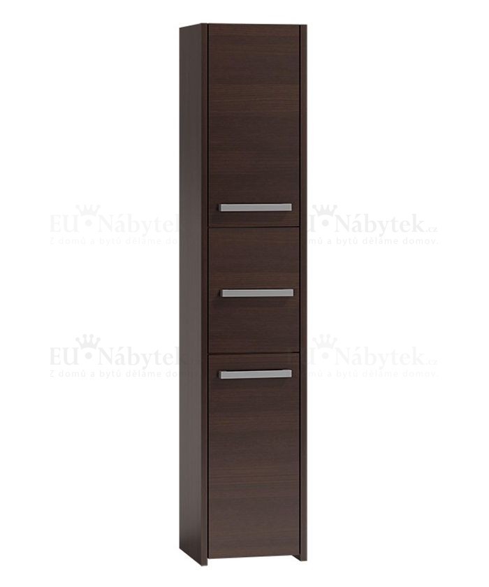 Praktická koupelnová skříňka, která je vyrobená z kvalitního lamina. Disponuje třema skříňkama. Hrany jsou lemovýny PVC páskou, která zaručuje dlouhou životnost. Rozměry jsou 170x30x30cm. Barevné provedení wenge.