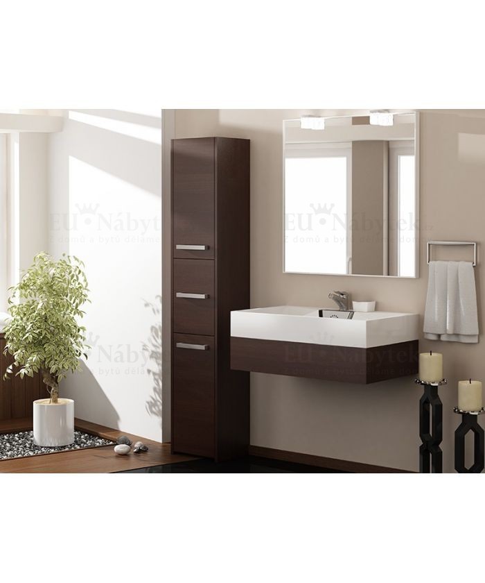 Praktická koupelnová skříňka, která je vyrobená z kvalitního lamina. Disponuje třema skříňkama. Hrany jsou lemovýny PVC páskou, která zaručuje dlouhou životnost. Rozměry jsou 170x30x30cm. Barevné provedení wenge.