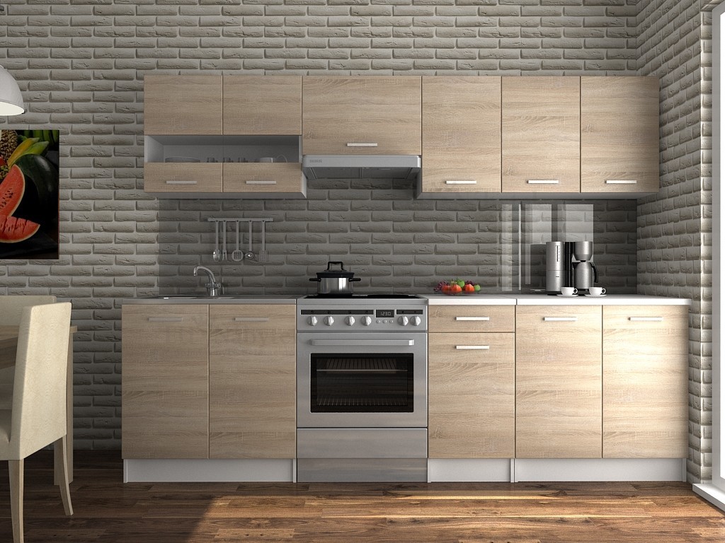 Praktická a moderní kuchyňská sestava vhodná do bytů, rodinných domů i menších kuchyní. Díky promyšlenému uspořádání, kvalitním materiálům a možnosti konfigurace pracovní desky nabízí ideální poměr ceny, funkčnosti a dlouhé životnosti.
