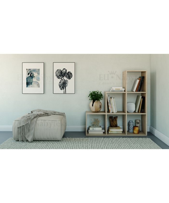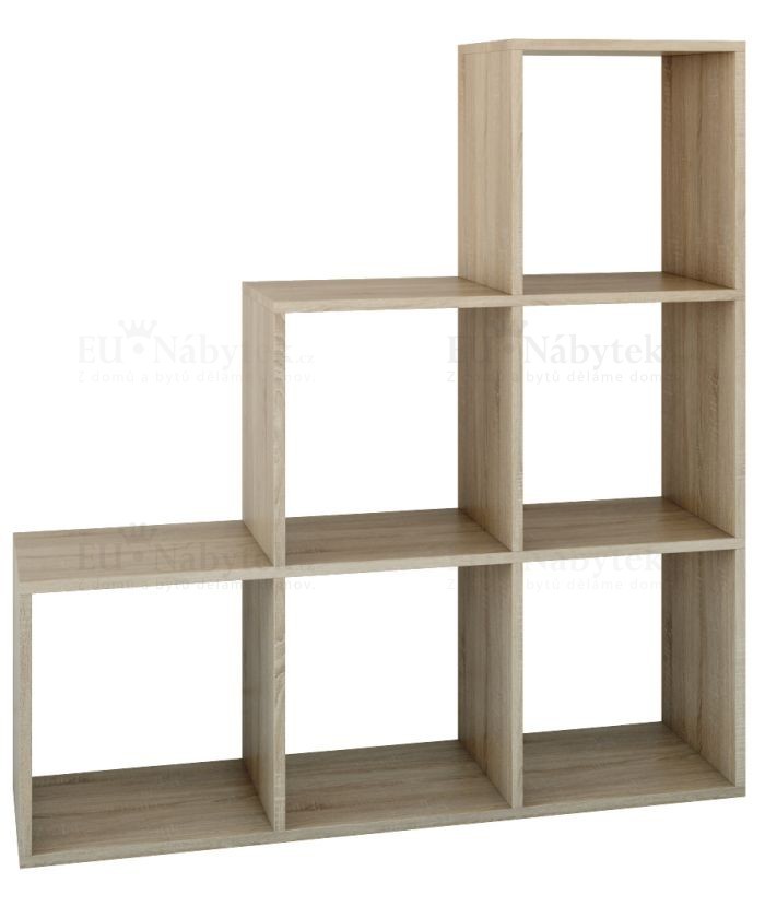 Praktický regál o rozměrech 115x115x30cm v provedení dub sonoma vhodný například do kancelářkých prostorů. Rozměr jedné vnitřní části je 36x36cm. Vyroben je z kvalitního MDF.
