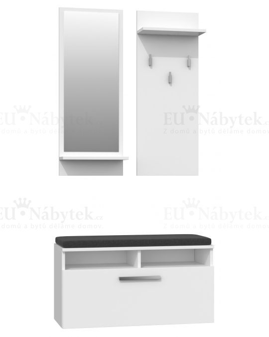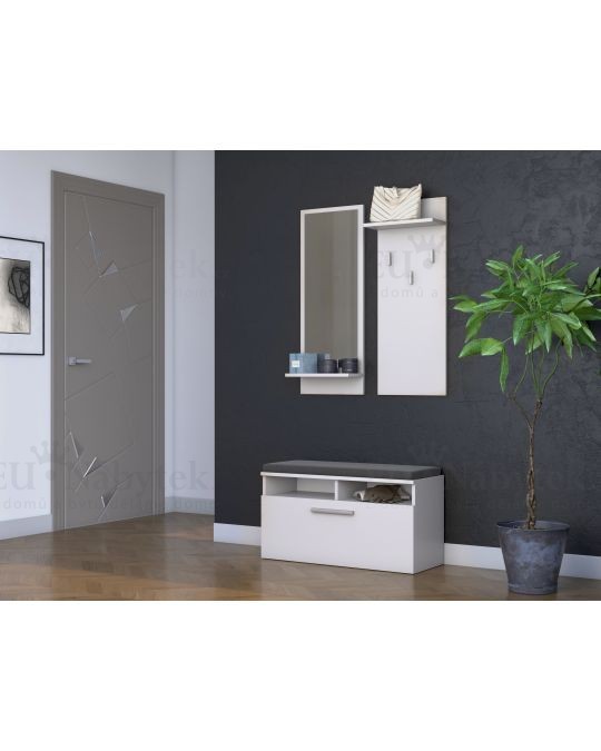 Věšáková sestava vyrobena z kvalitního lamina 16 mm, která disponuje třemi věšáky, praktickou poličkou včetně zrcadla a výklopným botníkem. Rozměr věšáku / zrcadla 35x90x16cm, rozměr skříňky 85x46x35cm. Hrany jsou lemovány ABS páskou. Výhodou je nastavitelná výška závěsu podle vlastního uvážení. V nabídce i v jiném barevném provedení, které naleznete níže na stránce.