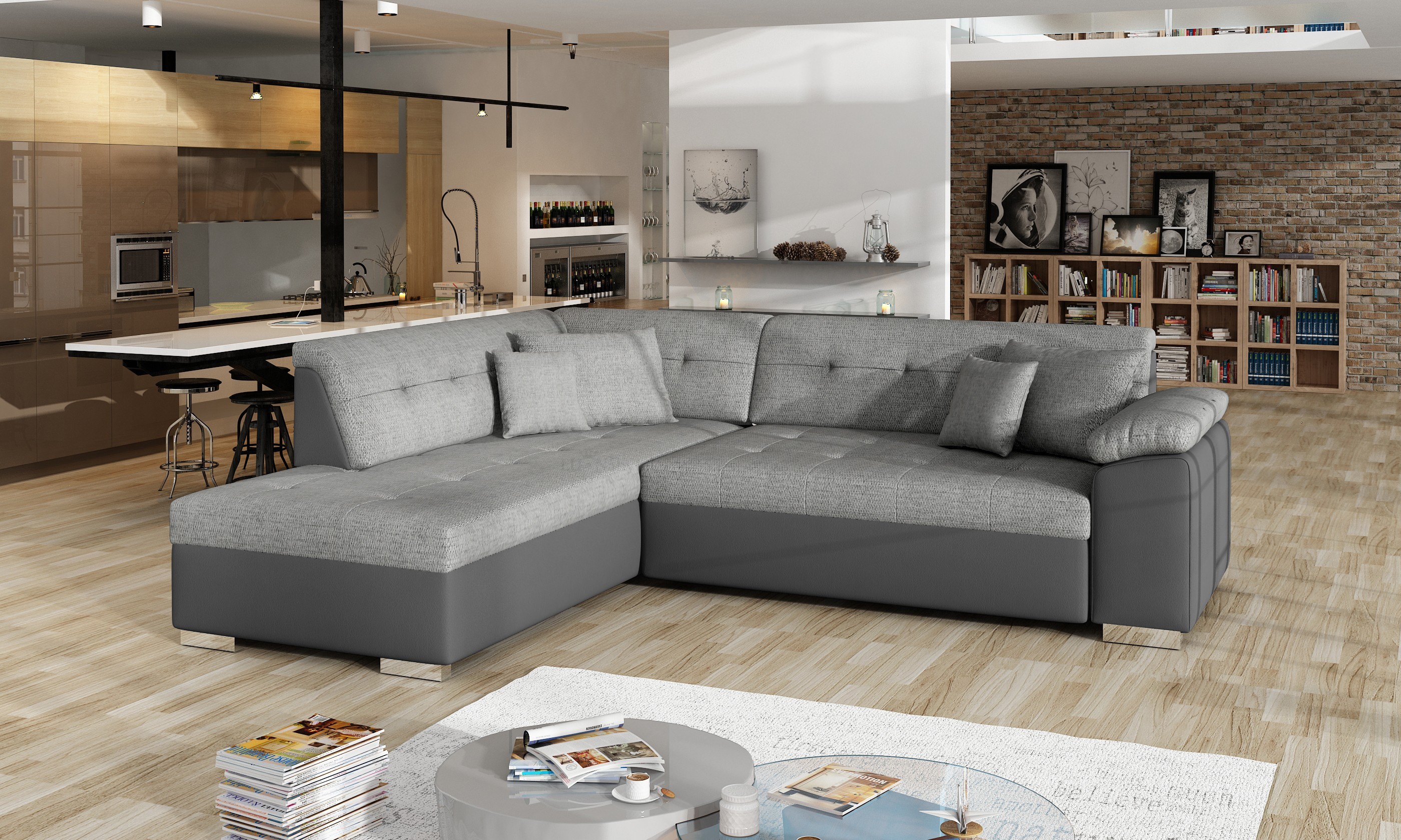 Moderní praktická rohová sedačka Cameron, která nadchne i ty nejnáročnější zákazníky. Netradiční a velmi moderní vzhled. Sedačka obsahuje prostor pro příležitostné spaní. Díky automatickému rozkladu získáte běhěm pár sekund spací plochu o rozměru 130x194cm. Pohodlné sezení zaručují vlnovcové pružiny Faliste s PUR pěnou. Výška sedu je 39cm. Sedačka je celočalouněná, vhodná do prostoru. Neobsahuje úložný prostor. Barevné provedení - látka Malmo 90 a ekokůže Madryt 195. V nabídce i v jiném barevném provedení.