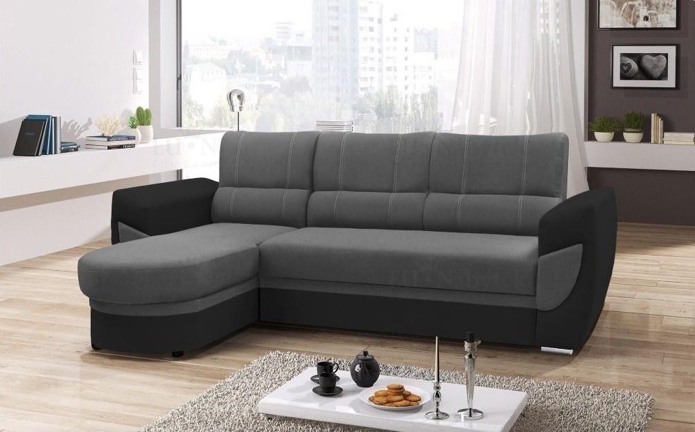 Rozkládací rohová sedačka DINERO je ideální pro ty, kteří ocení komfort a pohodlí. Tkanina vysoké kvality, masivní pevná kostra, pružiny bonell s kvalitní PUR pěnou T30 (3cm) zaručují komfortní posezení. Sedačka disponuje automatickým rozkladem i velkým úložným prostorem pro lůžkoviny, který se nachází v bočním otomanu. Spací plocha je 124x196cm. Čalouněná je látkou Bahama 34 a ekokůží Soft 11. V nabídce i jiné barevné kombinace.