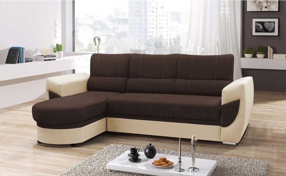 Rozkládací rohová sedačka DINERO je ideální pro ty, kteří ocení komfort a pohodlí. Tkanina vysoké kvality, masivní pevná kostra, pružiny bonell s kvalitní PUR pěnou T30 (3cm) zaručují komfortní posezení. Sedačka disponuje automatickým rozkladem i velkým úložným prostorem pro lůžkoviny, který se nachází v bočním otomanu. Spací plocha je 124x196cm. Čalouněná je látkou Bahama 35 a Bahama 31. V nabídce i jiné barevné varianty.