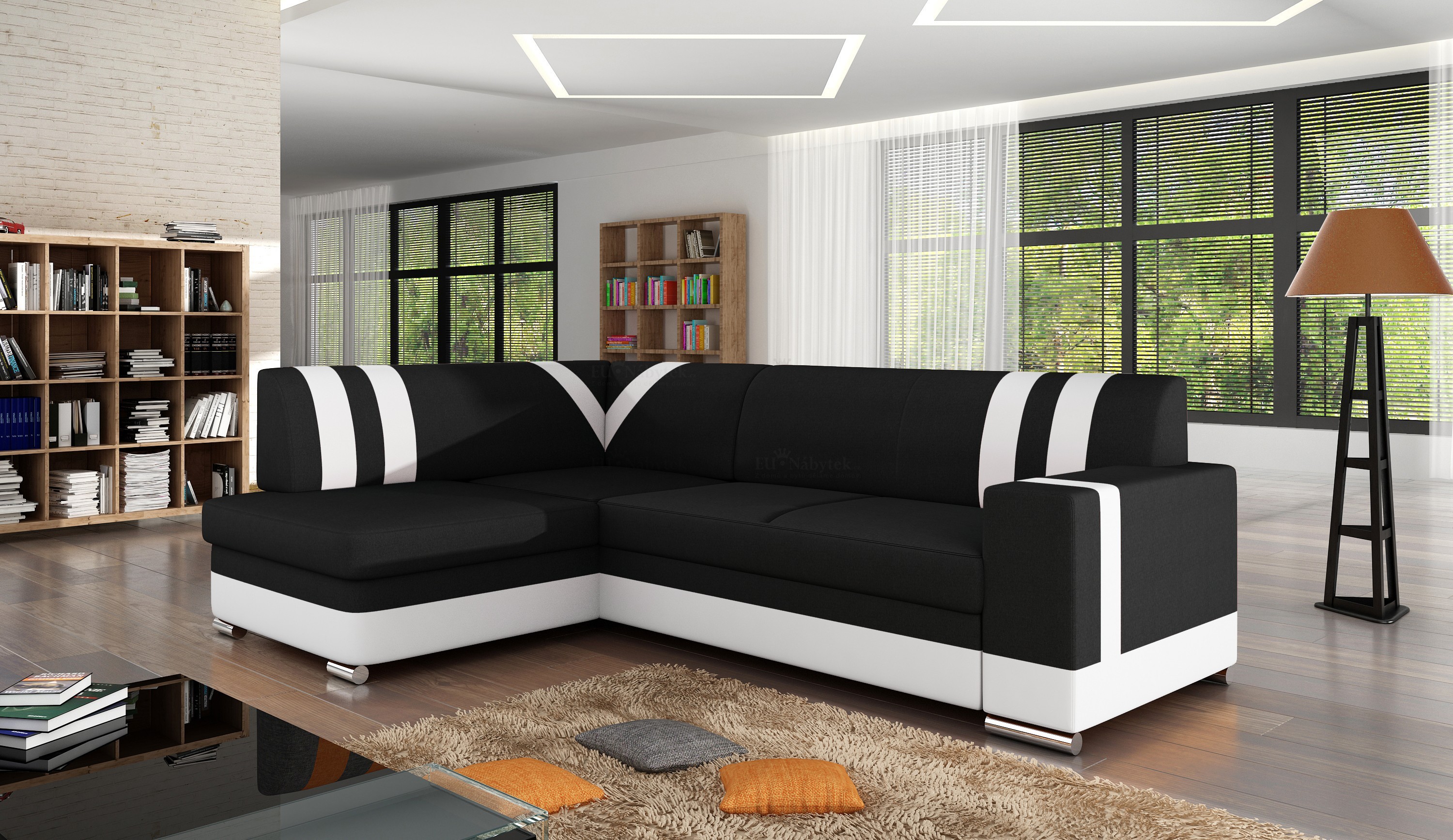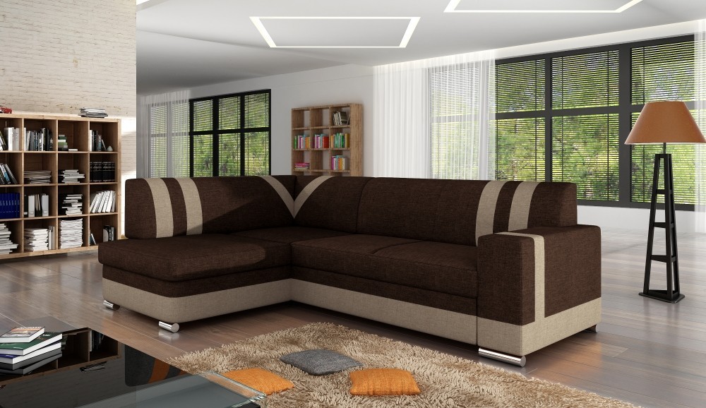 Praktická rohová sedačka X-line s velmi moderním vzhledem. Netradiční vzhled je díky barevným proužkům, které budou dominantou celého obývacího pokoje. Sedačka obsahuje úložný prostor a prostor na příležitostné spaní. Po rozložení získáte spací plochu 130x207cm. Při rozkladu se spodní část sedáku vysune dopředu a nadzvedne. Úložný prostor je v otomanu, který díky svému mechanismu snadno nadzvednete. Čalouněná je látkou Sawana 14 a ekokůží Madryt 120. V nabídce v široké škále barev.
