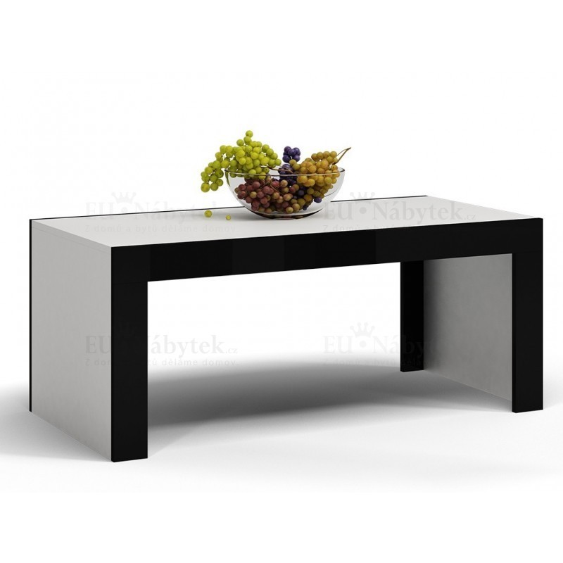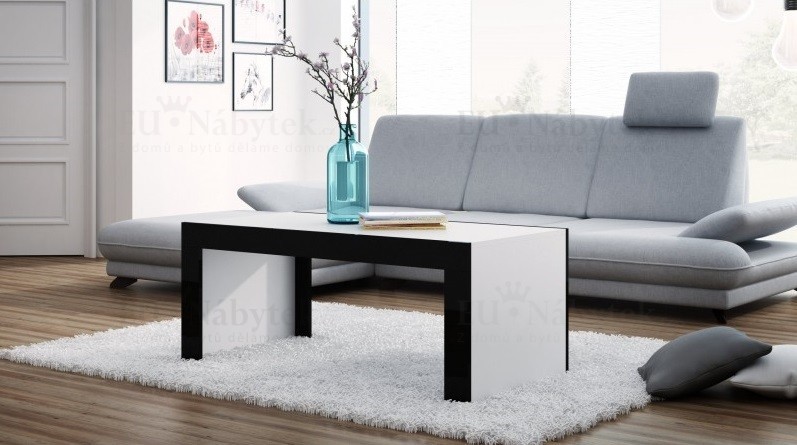 Moderní konferenční stolek v kombinaci bílá (korpus), černá lesk (boky). Vyroben je z kvalitního lamina 16mm. Hrany jsou lemovány ABS páskou, která zaručuje delší životnost. Rozměry jsou ŠxVxH (120x50x60cm).