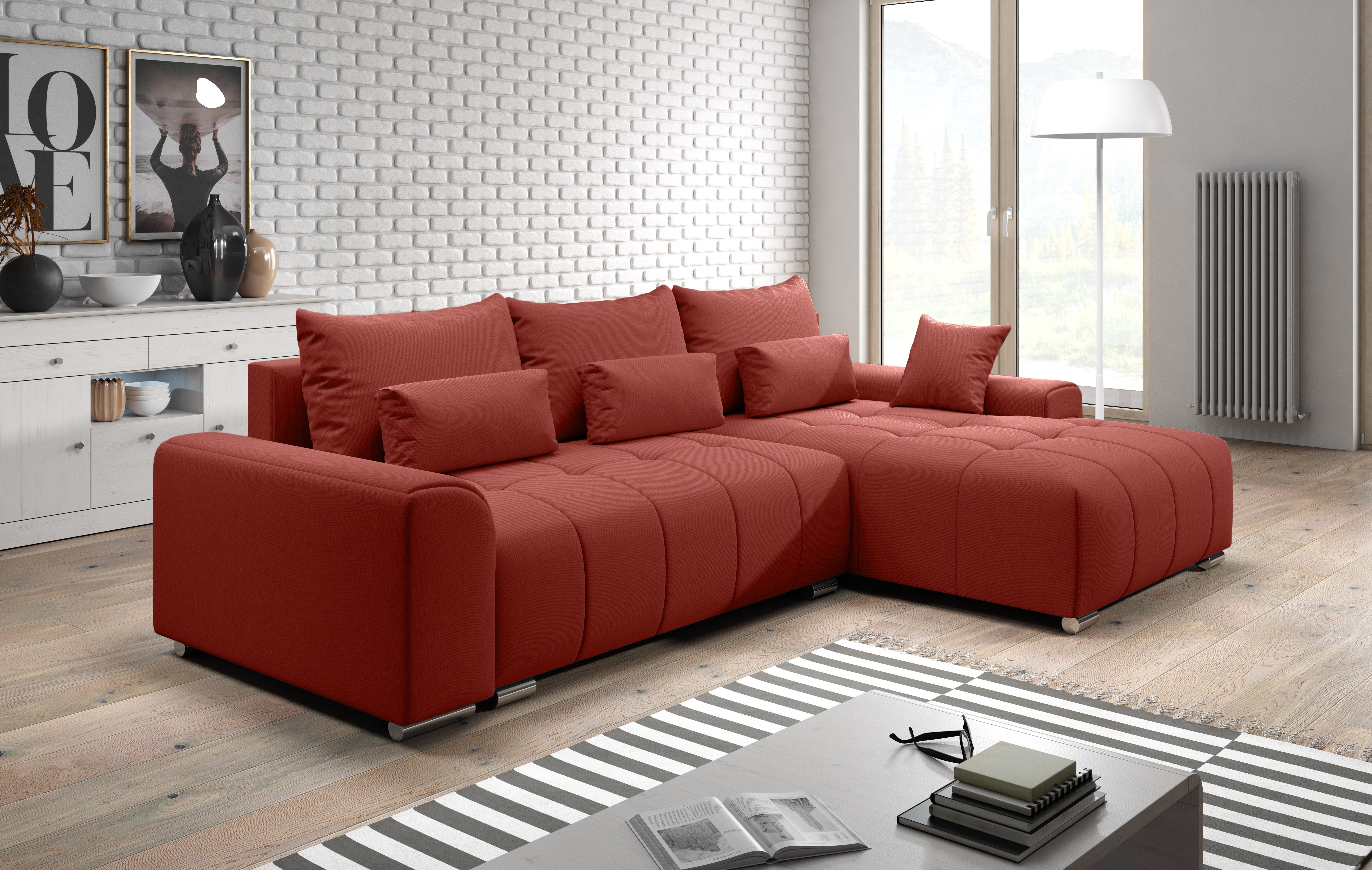 Sedací souprava BOLERO je ideální pro ty, kteří ocení komfort a pohodlí. Vzhledem k automatickému rozkladu je vhodná i pro ty nejnáročnější zákazníky. Po rozložení vznikne spací plocha 149x206cm. V prostřední části pak naleznete úložný prostor pro lůžkoviny o rozměru 130x70cm. Moderní vzhled dodávají kovové nožičky. Tkanina je velmi vysoké kvality. Pohodlné a komfortní posezení zaručuje masivní pevná kostra, pružinové jádro faliste s kvalitní HR pěnou T30. Praktické jsou polštáře, které mají potah na zip. Hloubka sedu bez polštářů 90cm, s polštáři 65cm, výška bez polštářů 80cm. Sedačka je celočalouněná, vhodná do prostoru. Barevné provedení - Metro 55. V nabídce i v jiném barevném provedení.Spojovací materiál je nutno přišroubovat na požadovanou stranu.