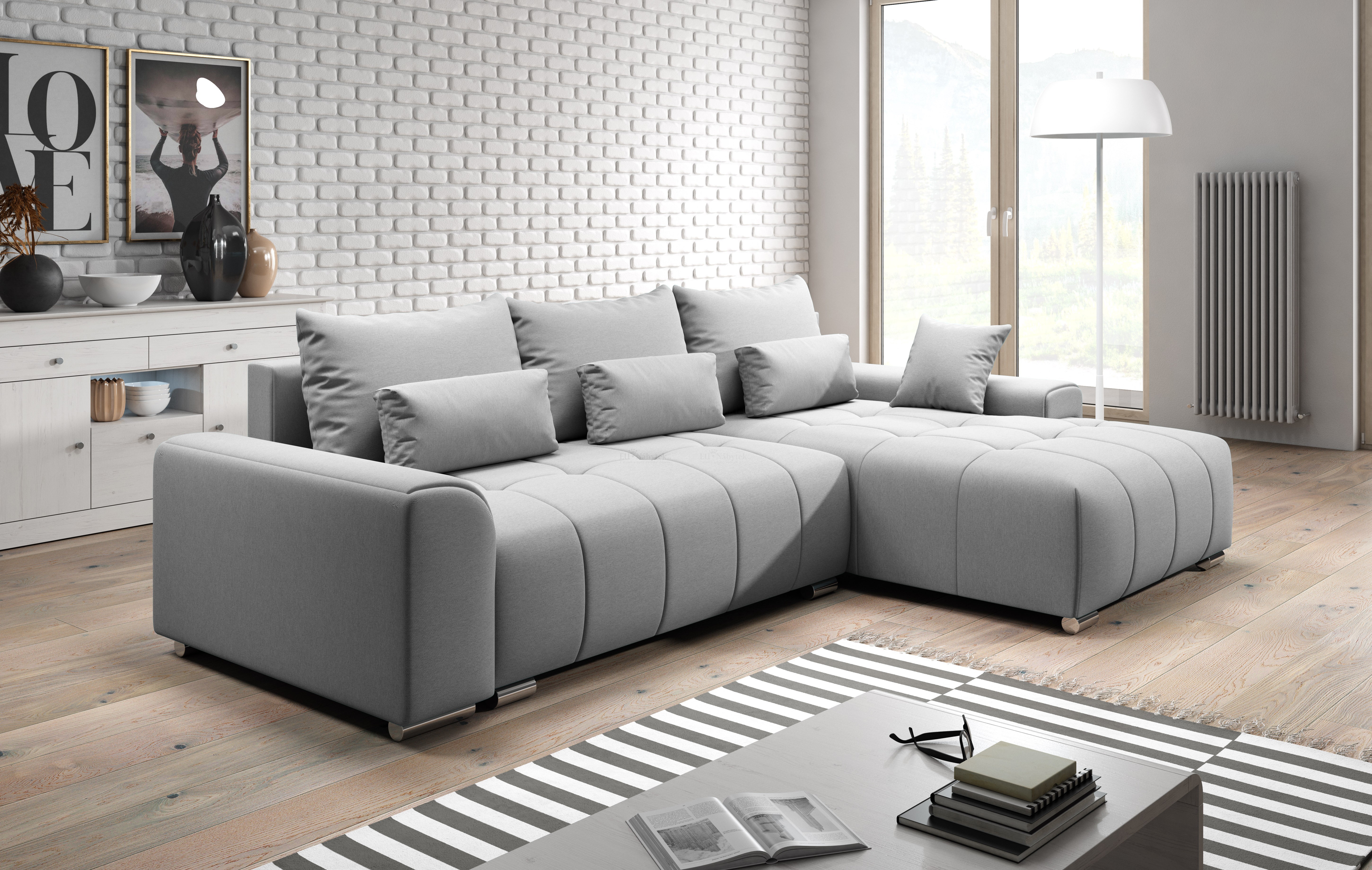 Sedací souprava BOLERO je ideální pro ty, kteří ocení komfort a pohodlí. Vzhledem k automatickému rozkladu je vhodná i pro ty nejnáročnější zákazníky. Po rozložení vznikne spací plocha 149x206cm. V prostřední části pak naleznete úložný prostor pro lůžkoviny o rozměru 130x70cm. Moderní vzhled dodávají kovové nožičky. Tkanina je velmi vysoké kvality. Pohodlné a komfortní posezení zaručuje masivní pevná kostra, pružinové jádro faliste s kvalitní HR pěnou T30. Praktické jsou polštáře, které mají potah na zip. Hloubka sedu bez polštářů 90cm, s polštáři 65cm, výška bez polštářů 80cm. Sedačka je celočalouněná, vhodná do prostoru. Barevné provedení - Orinoco 80. V nabídce i v jiném barevném provedení.Spojovací materiál je nutno přišroubovat na požadovanou stranu.