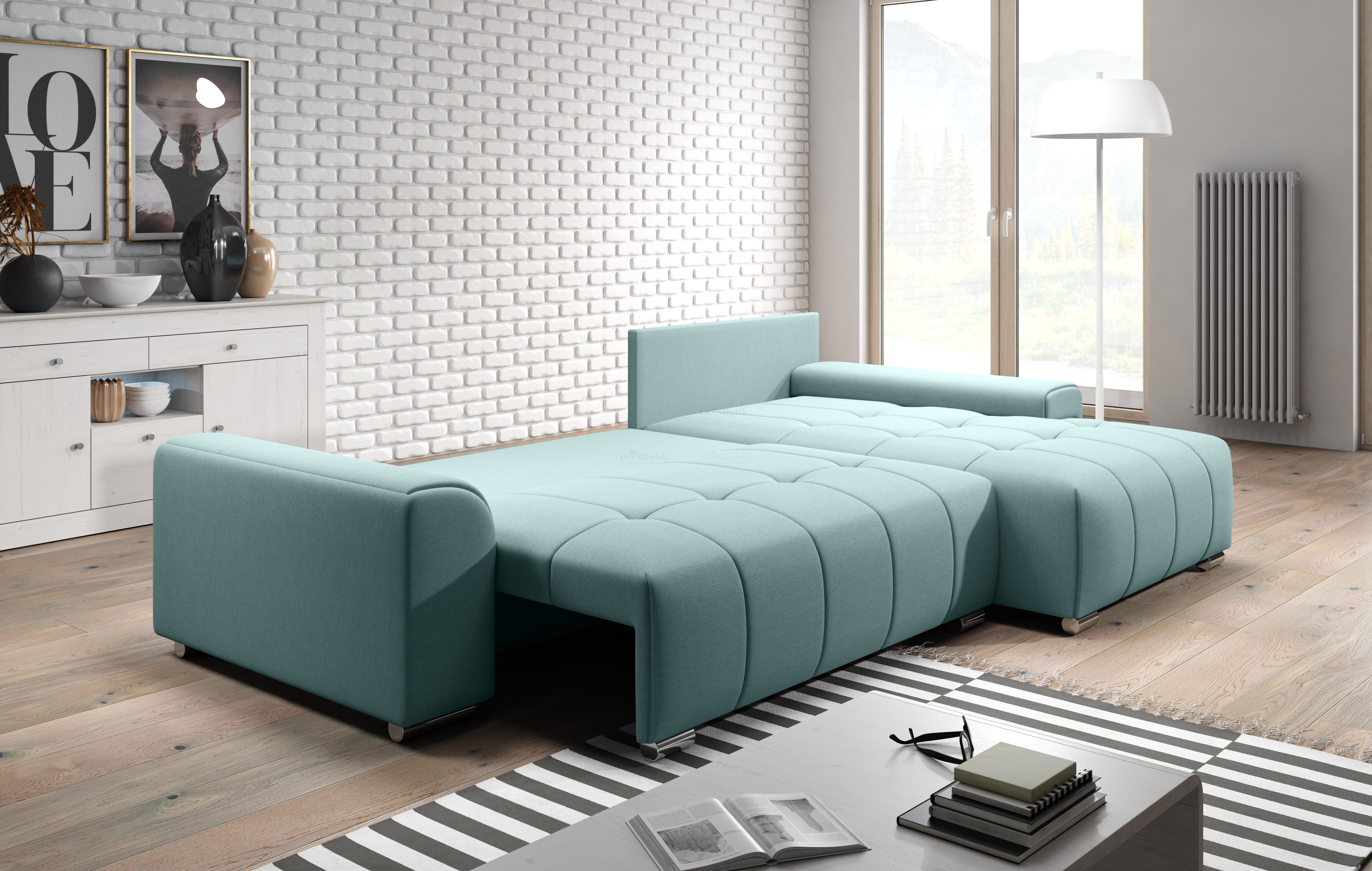 Sedací souprava BOLERO je ideální pro ty, kteří ocení komfort a pohodlí. Vzhledem k automatickému rozkladu je vhodná i pro ty nejnáročnější zákazníky. Po rozložení vznikne spací plocha 149x206cm. V prostřední části pak naleznete úložný prostor pro lůžkoviny o rozměru 130x70cm. Moderní vzhled dodávají kovové nožičky. Tkanina je velmi vysoké kvality. Pohodlné a komfortní posezení zaručuje masivní pevná kostra, pružinové jádro faliste s kvalitní HR pěnou T30. Praktické jsou polštáře, které mají potah na zip. Hloubka sedu bez polštářů 90cm, s polštáři 65cm, výška bez polštářů 80cm. Sedačka je celočalouněná, vhodná do prostoru. Barevné provedení - Cruz Mil 19041. V nabídce i v jiném barevném provedení.Spojovací materiál je nutno přišroubovat na požadovanou stranu.