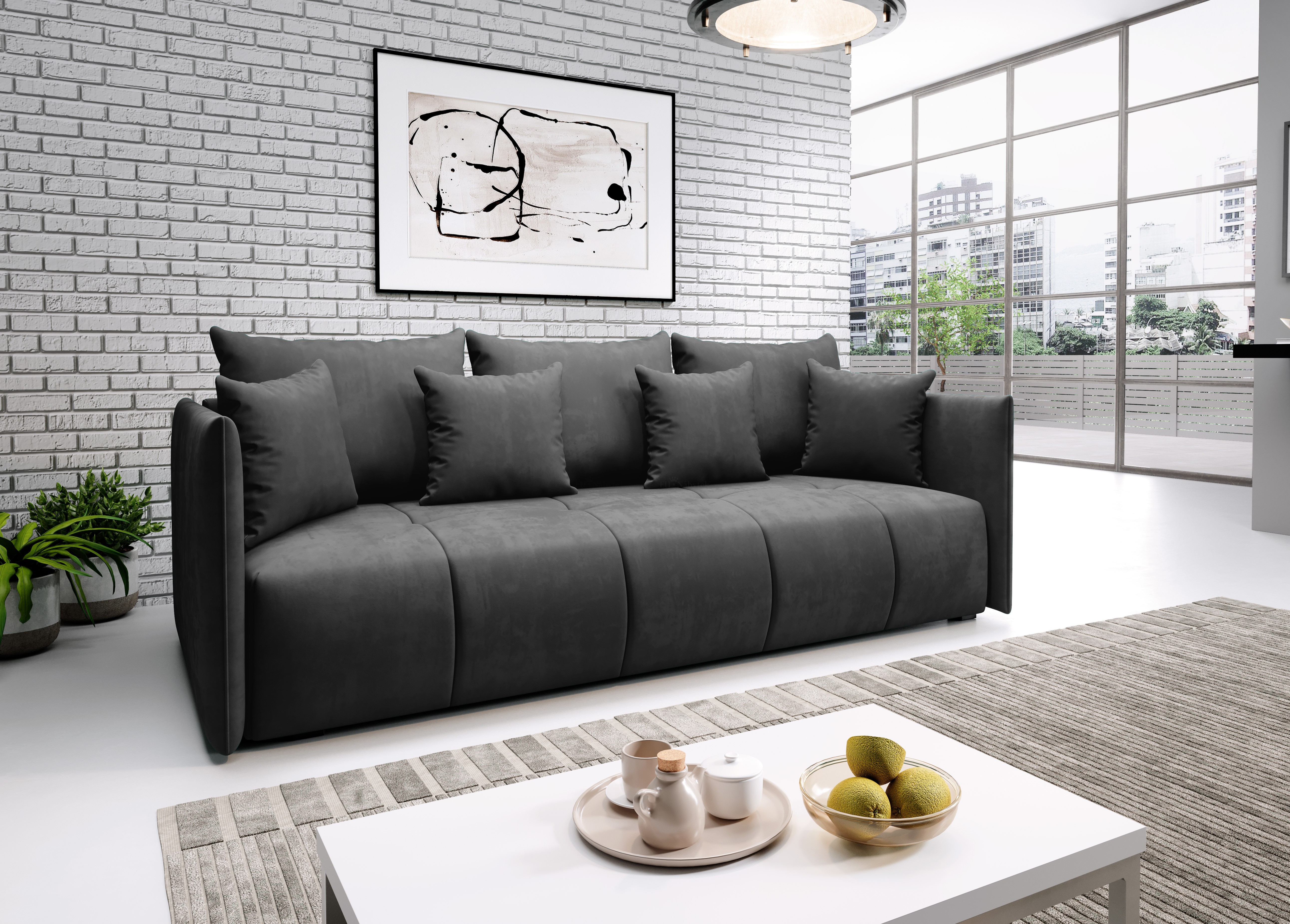 Pohovka ASPENDO je ideální pro ty, kteří ocení komfort a pohodlí. Vzhledem k automatickému rozkladu je vhodná i pro ty nejnáročnější zákazníky. Po rozložení vznikne spací plocha 140x198cm. V prostřední části pak naleznete úložný prostor pro lůžkoviny o rozměru 191x70cm. Moderní vzhled dodávají kovové nožičky. Tkanina je velmi vysoké kvality. Látka MONOLITH je potažena speciální ochrannou fólií, která vytváří hydrofobní vrstvu chránící před rychlou absorpcí tekutin. Místo toho, aby byla okamžitě absorbována, voda kondenzuje na povrchu materiálu. To nám dává čas použít jemný hadřík nebo papírový ručník k jemnému setření rozlité kapaliny. Pohodlné a komfortní posezení zaručuje masivní pevná kostra, pružinové jádro faliste s kvalitní PUR pěnou T25. Praktické jsou polštáře, které mají potah na zip. Hloubka sedu bez polštářů 78cm, s polštáři 50cm, výška bez polštářů 85cm. Pohovka je celočalouněná, vhodná do prostoru. Barevné provedení - Monolith 84. V nabidce naleznete i další barevné varianty.