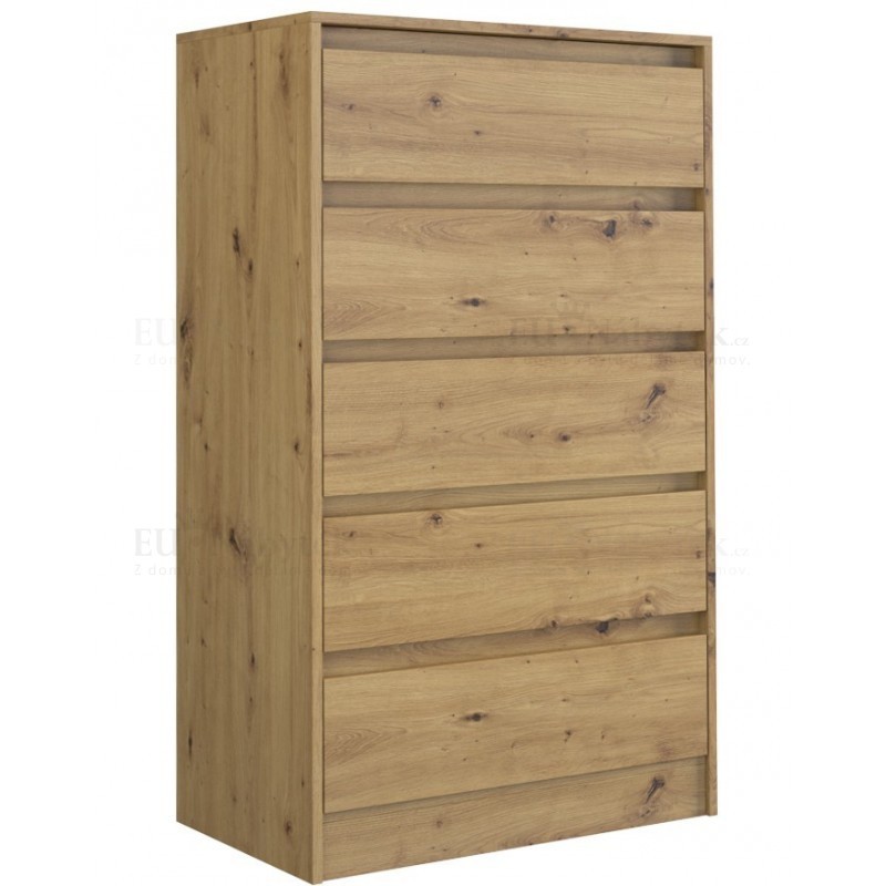 Moderní komoda vyrobena z kvalitního lamina řešená bezúchytkovým systémem. Hrany jsou zakončeny PVC páskou, která zaručuje dlouhou životnost. Rozměry (ŠxVxH) 70x124x43cm. V barevném provedení dub artisan.