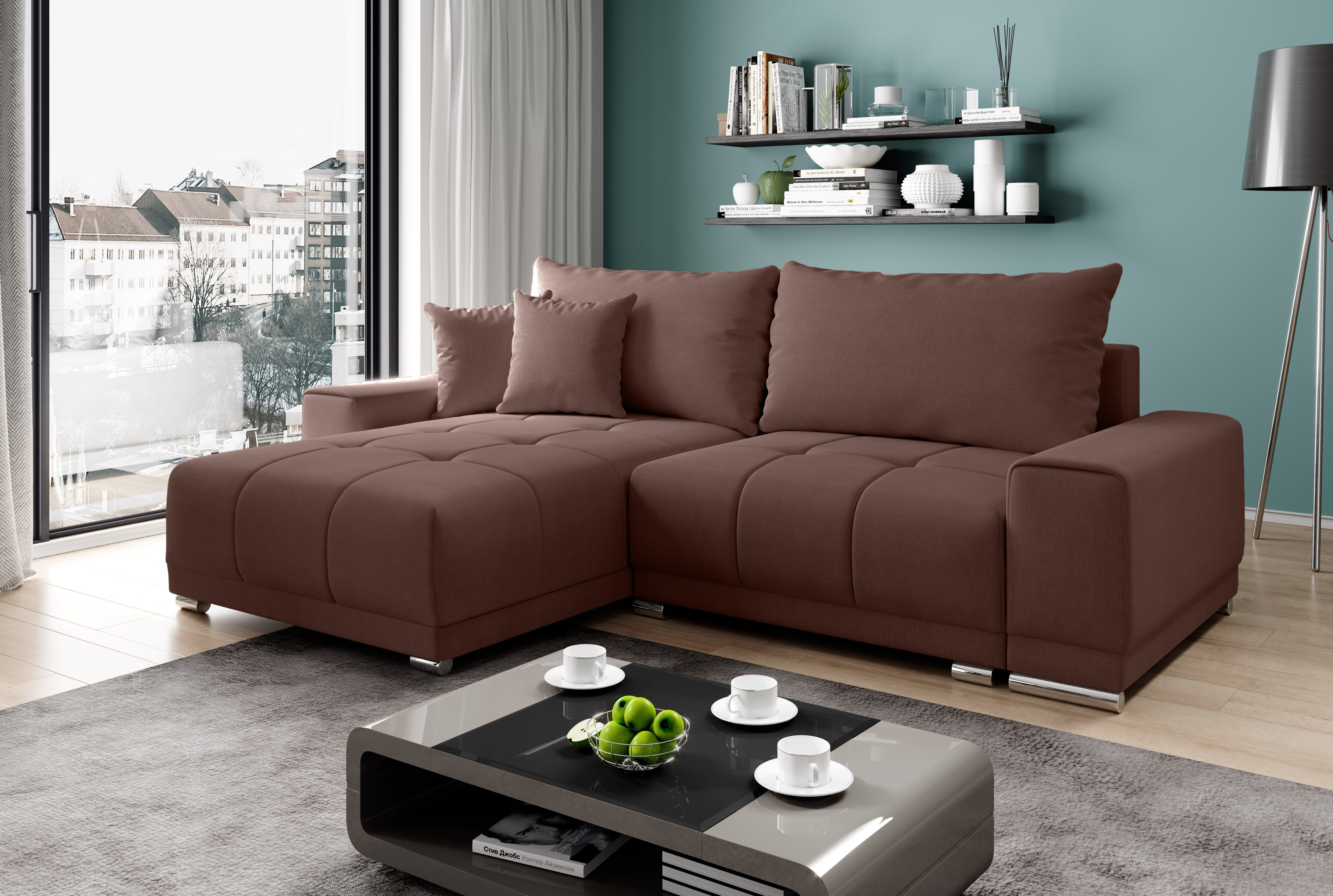 Sedací souprava KALVINE je ideální pro ty, kteří ocení komfort a pohodlí. Vzhledem k automatickému rozkladu je vhodná i pro ty nejnáročnější zákazníky. Po rozložení vznikne spací plocha o rozměru 145x200cm. V prostřední části pak naleznete úložný prostor pro lůžkoviny o rozměru 90x70cm. Tkanina je vysoké kvality. Pohodlné a komfortní posezení zaručuje masivní pevná kostra, pružinové jádro faliste s kvalitní PUR pěnou T30. Praktické jsou polštáře, které mají potah na zip. Nožičky jsou kovové. Hloubka sedu bez polštářů 90cm, s polštáři 65cm, výška bez polštářů 80cm. Sedačka je celočalouněná, vhodná do prostoru. Barevné provedení - Orinoco 80. V nabídce i v jiném barevném provedení.