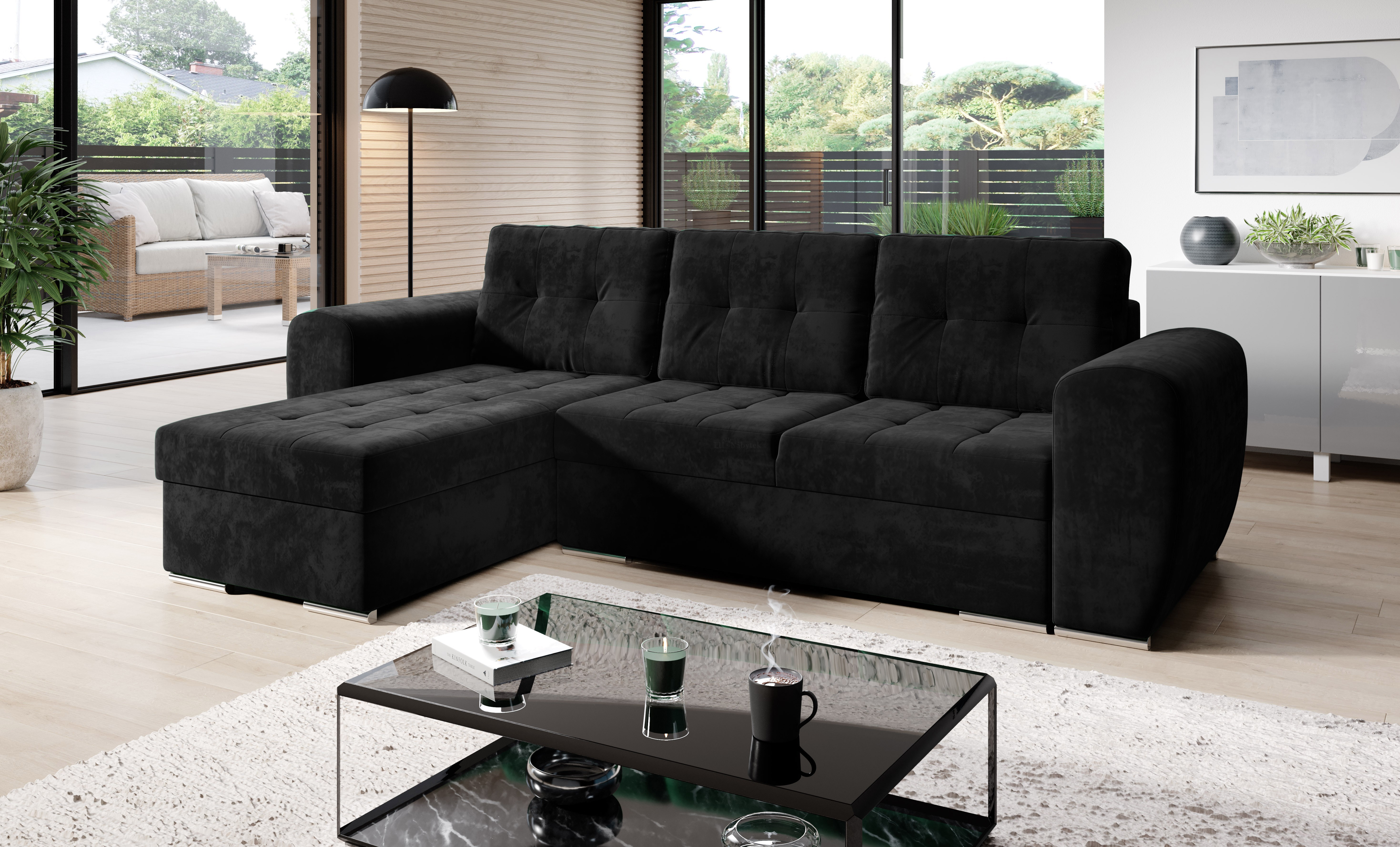 Rozkládací rohová sedačka BARON černá