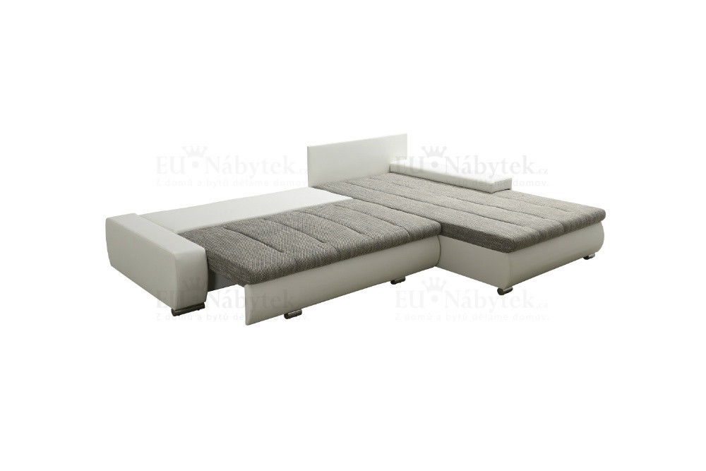 Krásná rohová sedačka TOSCANIA plní všechny požadavky na moderní designovou sedačku. Moderní nízké opěrky a minimalistický design zaručují, že sedačka oživí váš interiér. Sedačka má funkci rozkladu a úložný prostor. Rozměry jsou 297x210x85cm. Rozměry spací plochy jsou 150x255cm. Pohodlné sezení Vám zaručují kvalitní pružiny Faliste spolu s PUR pěnou T30. Sedačka je univerzální, dá se složit na obě strany. Nožky jsou z kovu. Barevné provedení - látka Cosmic 170 a ekokůže Madryt 1100. V nabídce spoustu dalších barevných provedeních.