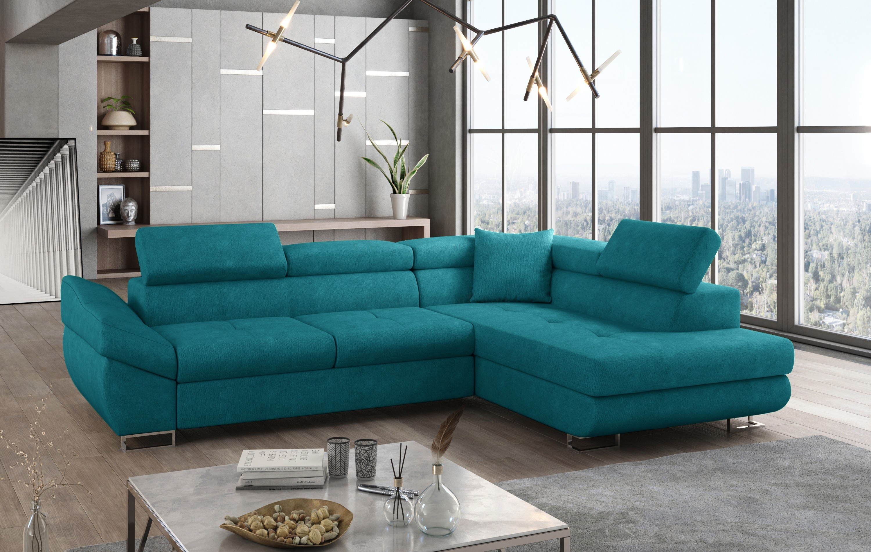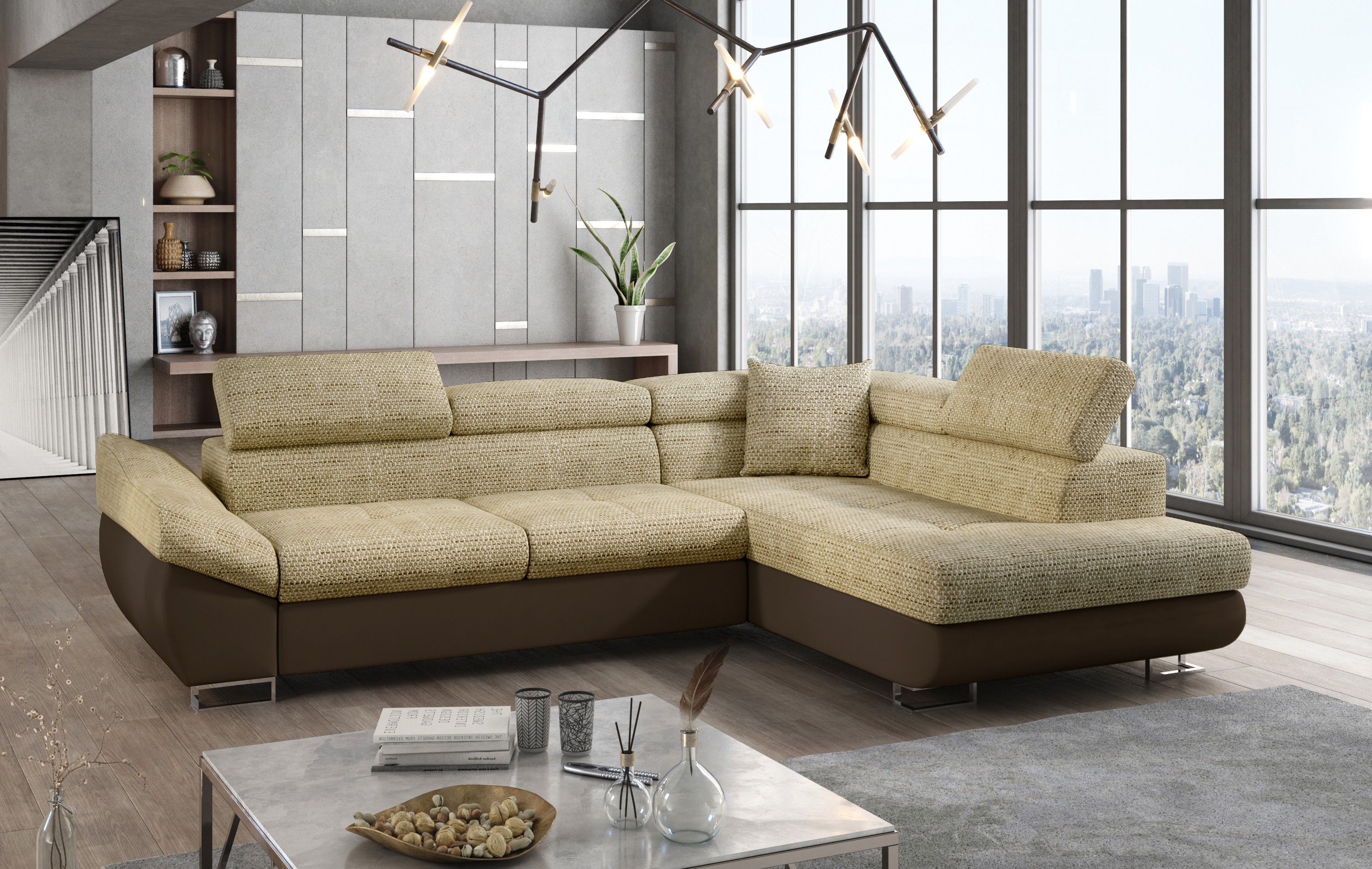Rohová sedací souprava Lyon je ideální pro ty, kteří ocení komfort a pohodlí. Její moderní vzhled bude dominancí každého obývacího pokoje. Tkanina vysoké kvality, masivní pevná kostra, pružinové jádro s kvalitní pěnou T30 zaručují komfortní sezení. Sedací souprava je včetně úložného prostoru, který se nachází v boční části sedačky. Velkou předností této sedačky jsou tři polohovatelné záhlavníky. Jednoduchým manuálním polohováním opěrky hlavy si zvýšíte komfort sezení. Spací část nemusí být čalouněná stejnou látkou jako je sezení. Na našich stránkách naleznete další barevné varianty.