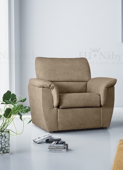 Luxusní křeslo DITA. Pohodlné sezení zaručují pružiny typu faliste spolu s PUR pěnou. Výška sedu je 45 cm a hloubka sedu je 58 cm. Úložný prostor se nachází pod sedákem. Nožky jsou z plastu. Látka křesla Largo 3. Křeslo můžete zakoupit i v jiném barevném provedení a také jako sestavu.