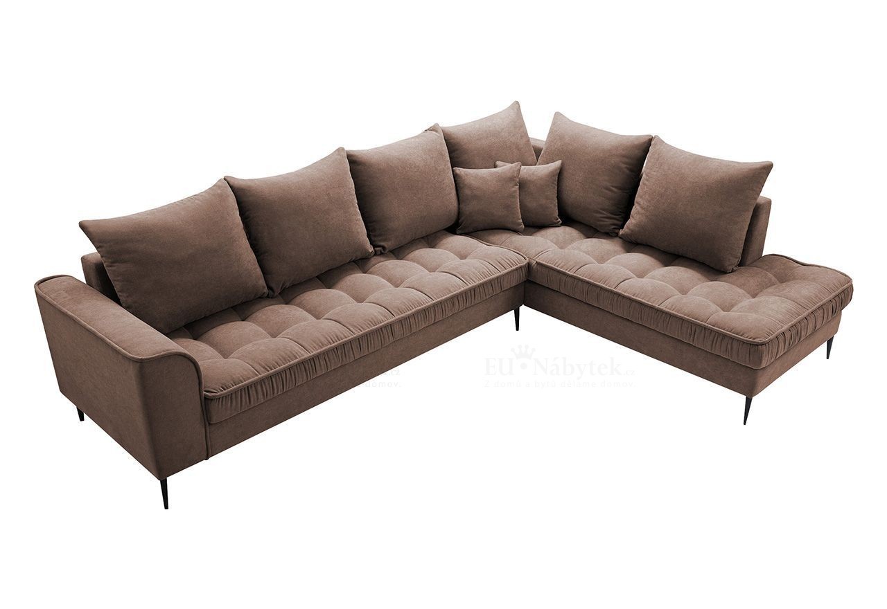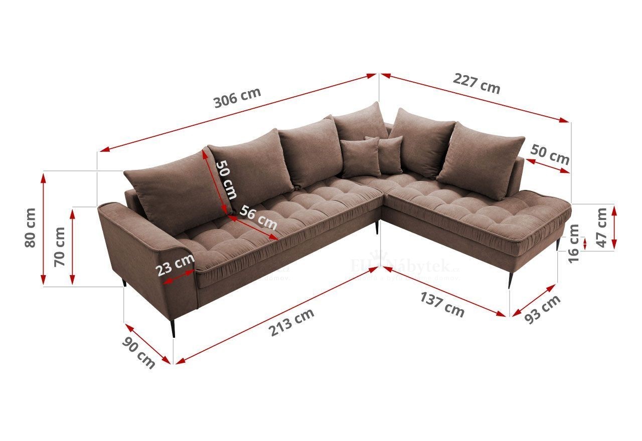 Luxusní rohová sedačka skandinávského stylu, která nadchne i ty nejnáročnější zákazníky. Sedačka má velmi kvalitní prošití sezení i opěrných polštářů, které dodávají sedačce luxusní vzhled. Konstrukce sedačky je z kvalitního materiálu včetně sezení z PUR pěny T30 a pružin faliste. Doplněna je moderními černými nožičkami. Čalouněná je látkou Soro 28. . Nemá úložný prostor ani možnost rozložení pro příležitostné spaní. Celočalouněná - vhodná do prostoru.