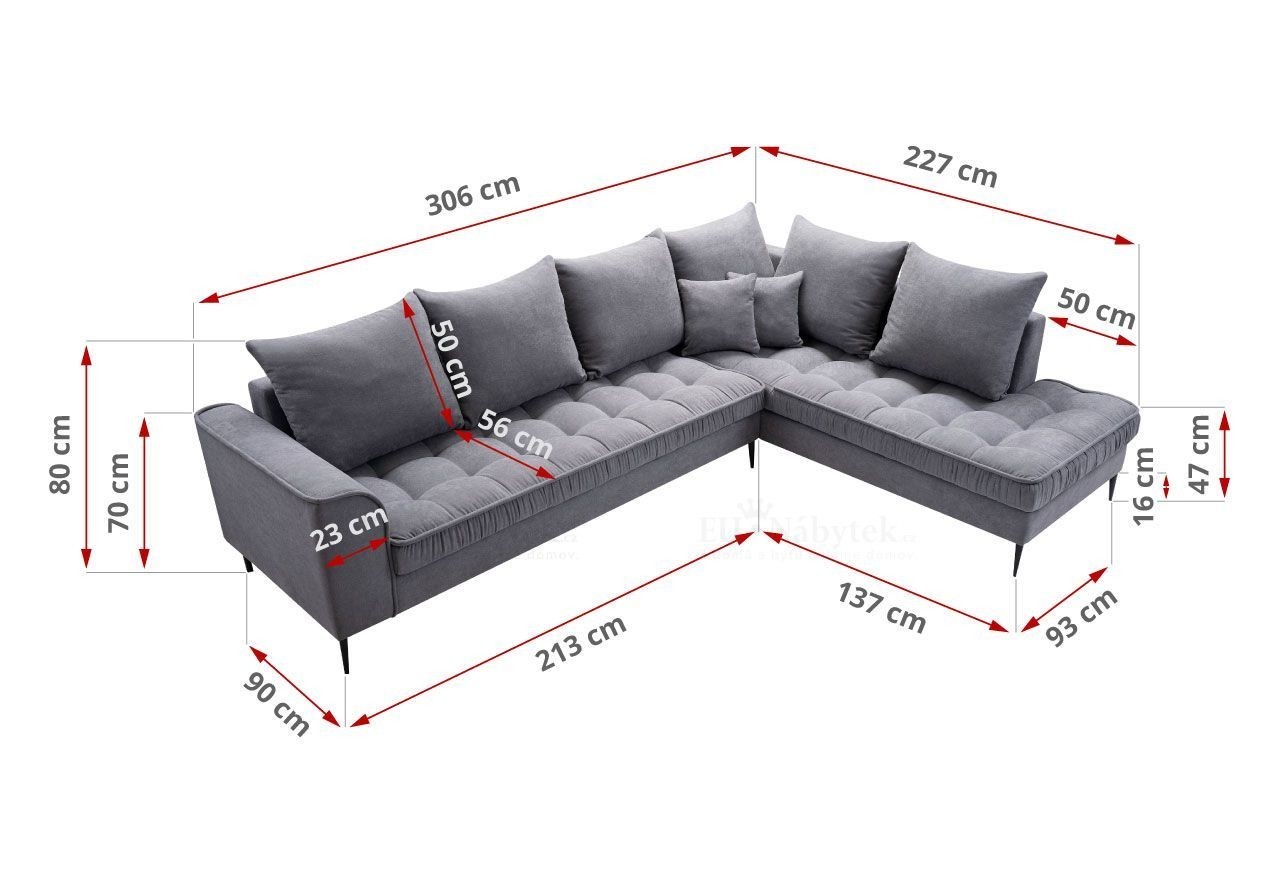 Luxusní rohová sedačka skandinávského stylu, která nadchne i ty nejnáročnější zákazníky. Sedačka má velmi kvalitní prošití sezení i opěrných polštářů, které dodávají sedačce luxusní vzhled. Konstrukce sedačky je z kvalitního materiálu včetně sezení z PUR pěny T30 a pružin faliste. Doplněna je moderními černými nožičkami. Čalouněná je látkou Soro 93. Níže na stránce naleznete další barevné varianty. Nemá úložný prostor ani možnost rozložení pro příležitostné spaní. Celočalouněná - vhodná do prostoru.