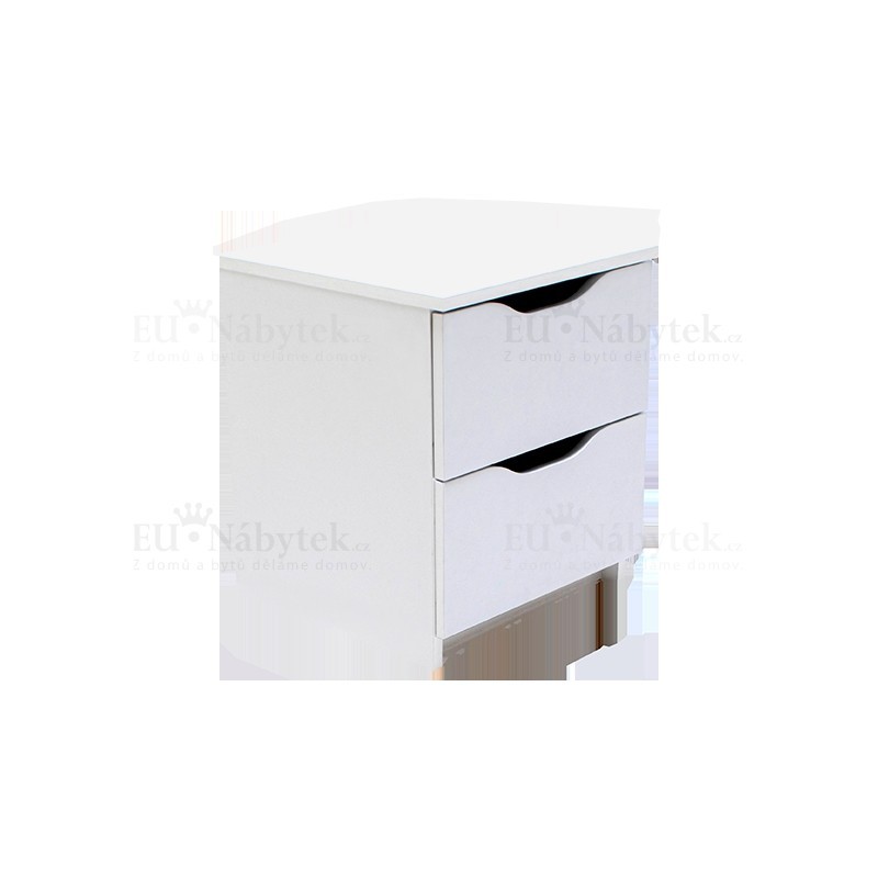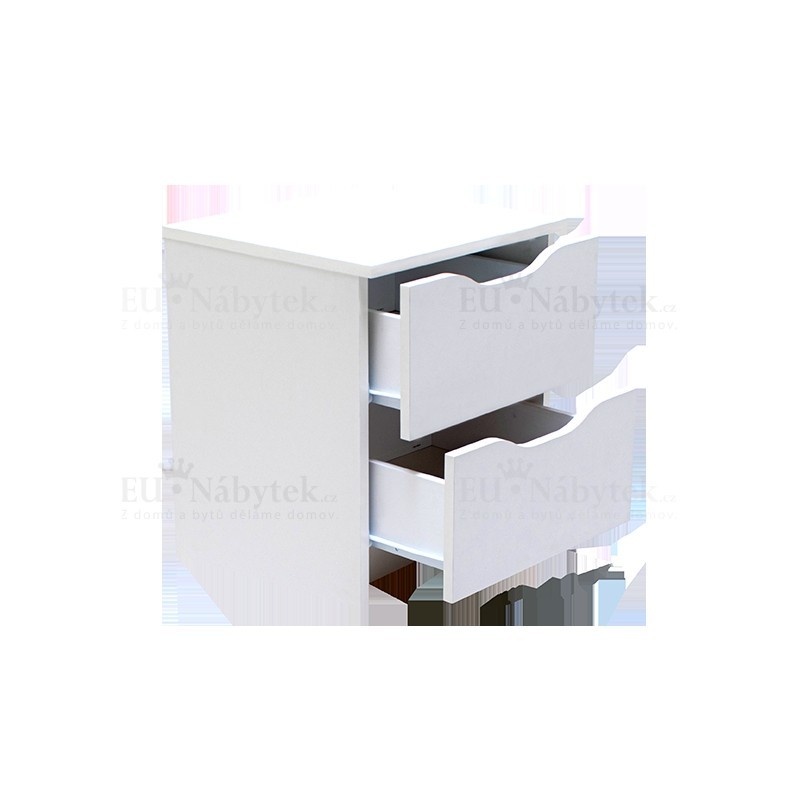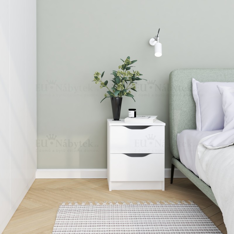 Noční stolek ALEXIS vhodný do ložnice, ale i kanceláře a disponuje dvěmi šuplíky. Tento stolek je vyroben z kvalitní LTD. Hrany jsou lemovány ABS páskou. Zaručuje tak dlouhou životnost produktu. Rozměry jsou (šxhxv) 40x40x50cm. V barevném provedení bílá. Níže na stránce naleznete další produkty z této kolekce. Dodáváno v demontu.