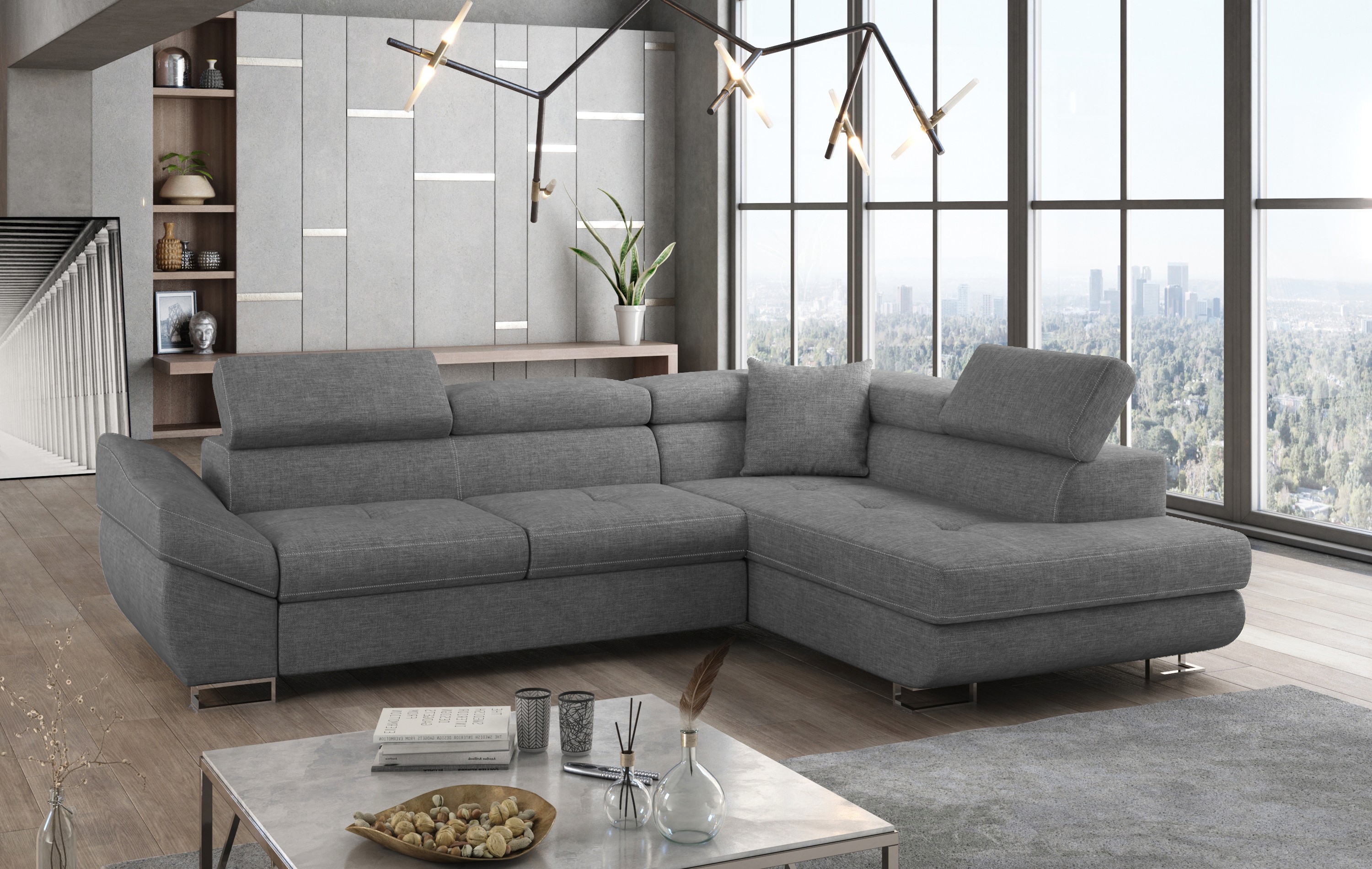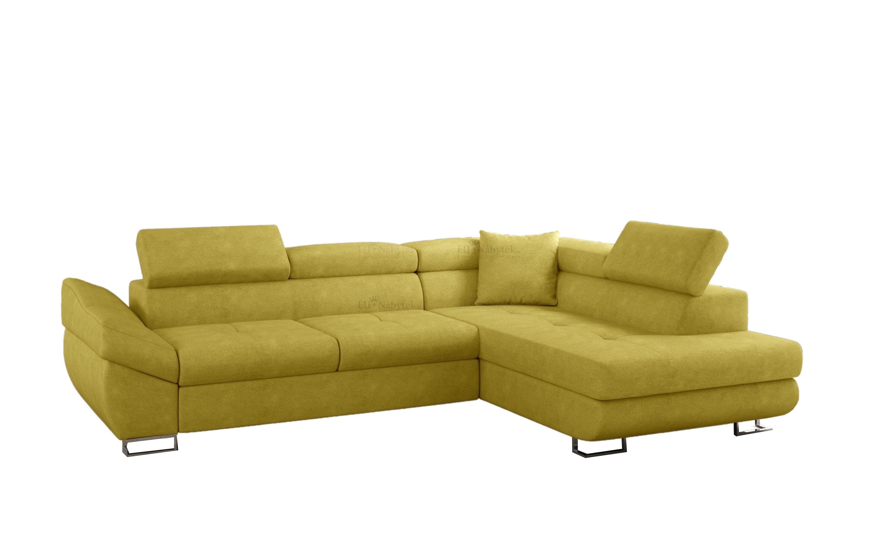 Rohová sedací souprava Lyon je ideální pro ty, kteří ocení komfort a pohodlí. Její moderní vzhled bude dominancí každého obývacího pokoje. Tkanina vysoké kvality, masivní pevná kostra, pružinové jádro s kvalitní pěnou T30 zaručují komfortní sezení. Sedací souprava je včetně úložného prostoru, který se nachází v boční části sedačky. Velkou předností této sedačky jsou tři polohovatelné záhlavníky. Jednoduchým manuálním polohováním opěrky hlavy si zvýšíte komfort sezení. Spací část nemusí být čalouněná stejnou látkou jako je sezení. Na našich stránkách naleznete další barevné varianty.