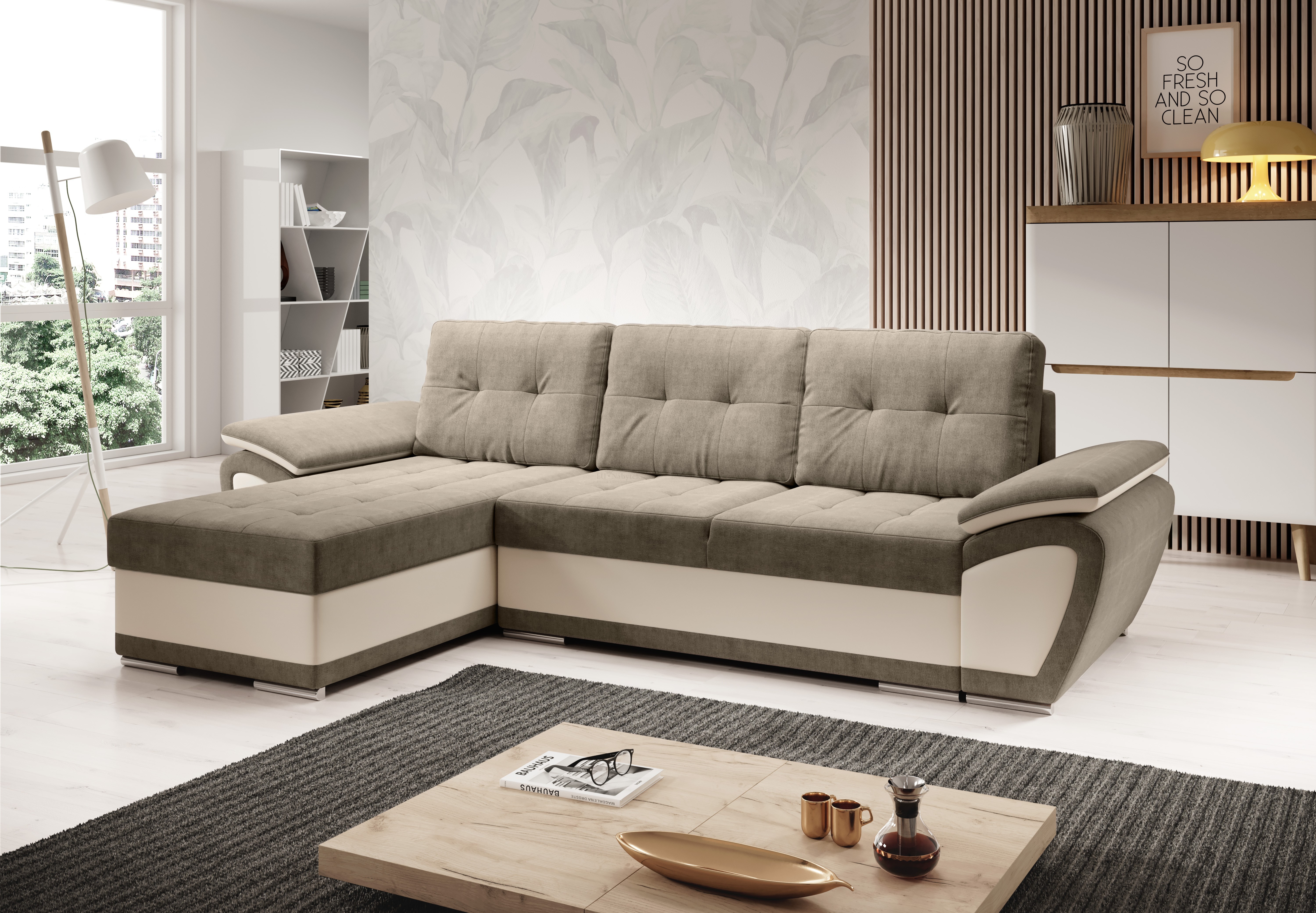 Rozkládací rohová sedačka Erdorado je ideální pro ty, kteří ocení komfort a pohodlí. Tkanina vysoké kvality, masivní pevná kostra, pružinové jádro Faliste s kvalitní PUR pěnou T28 zaručují komfortní posezení. Sedačka disponuje také úložným prostorem, který naleznete po rozložení v hlavní části sedačky. Plocha po rozložení je 218x116cm. Nožky jsou z kovu v barvě chrom. Sedačka je celočalouněná, vhodná do prostoru. Rozměr polštáře 50x67cm, hloubka sedu s polštáři 45cm, hloubka sedu bez polštáře 69cm, výška sedu 39cm. Kombinace barev - Orinoco 37 a ekokůže Madryt 120. V nabídce v mnoha dalších barvách.
