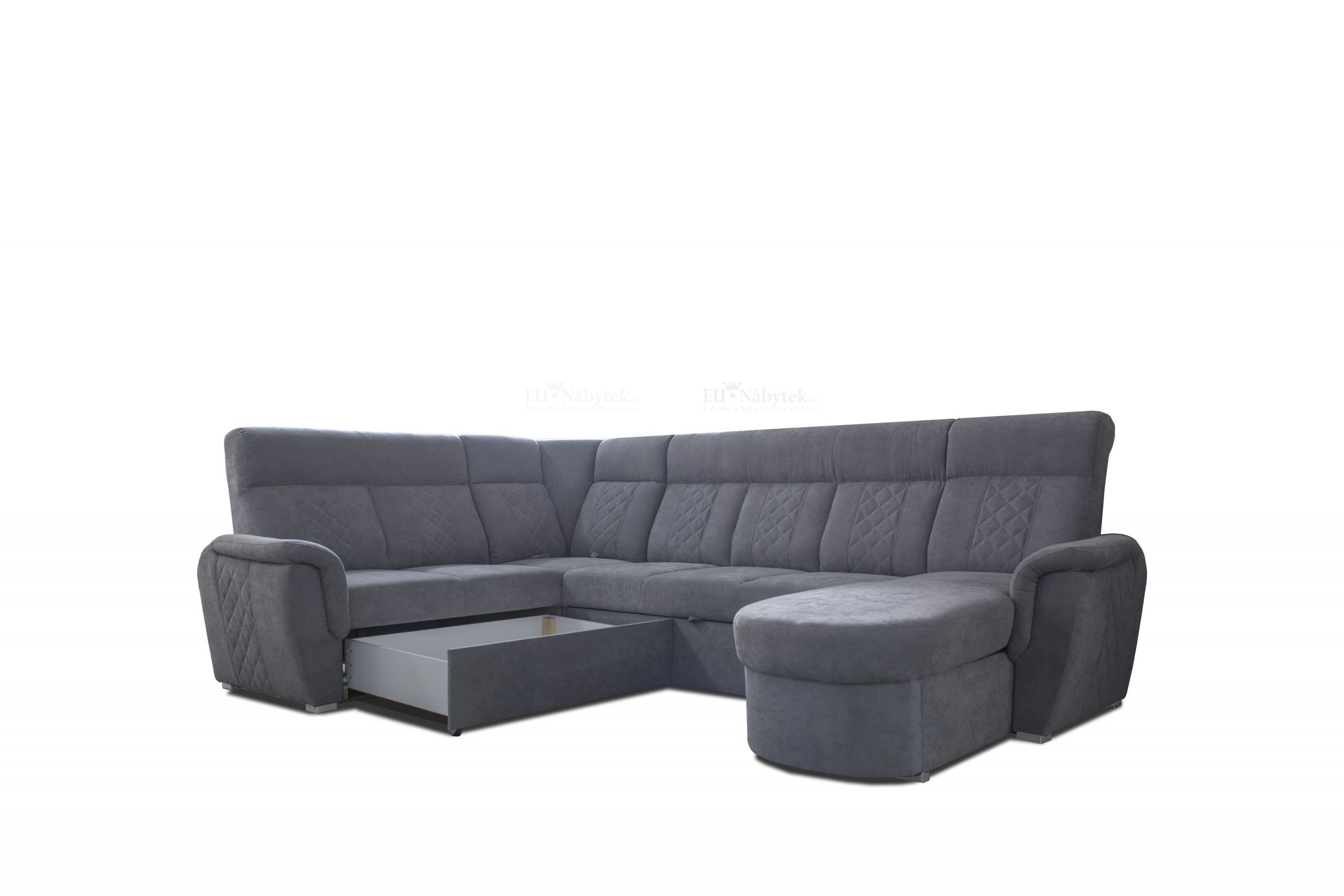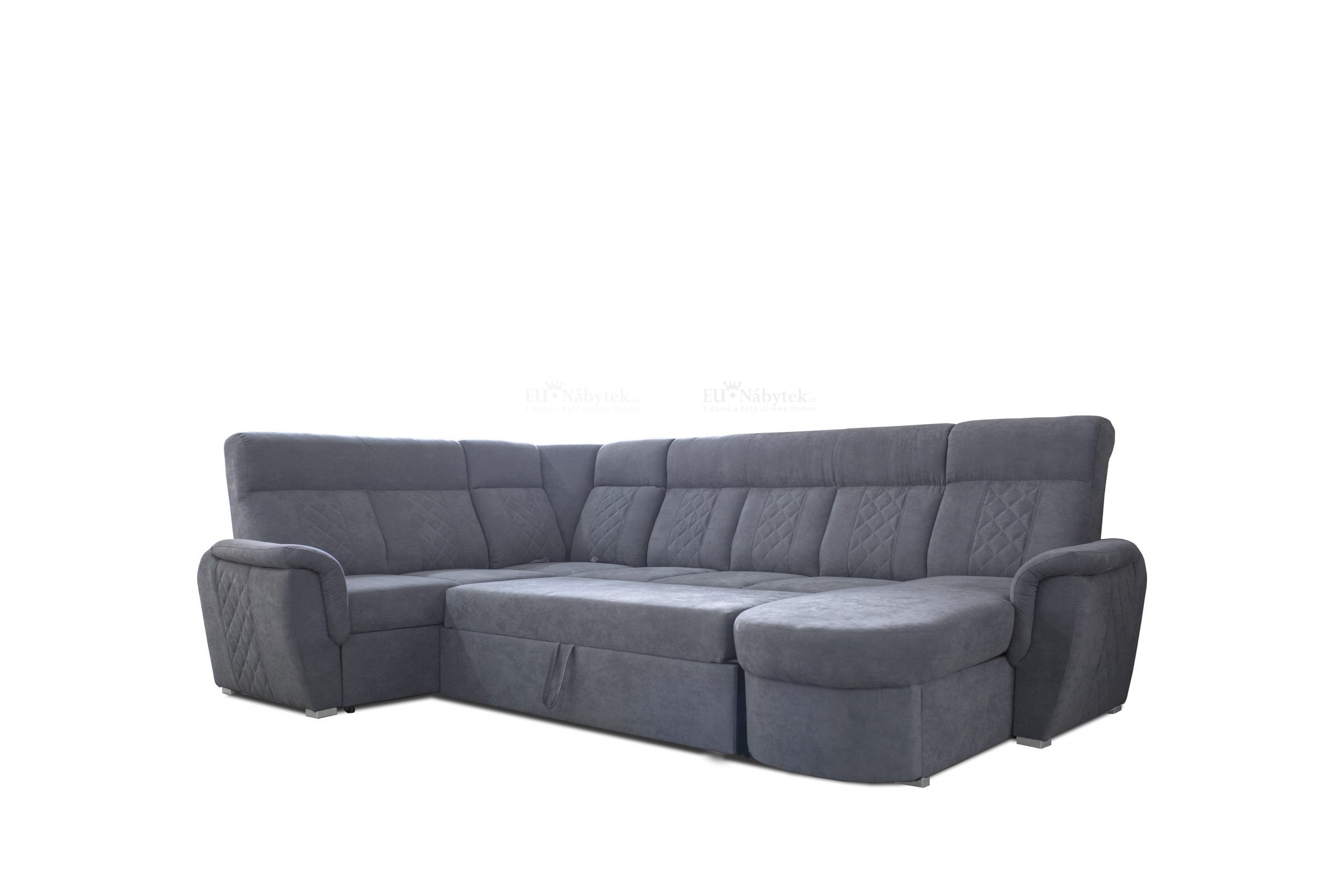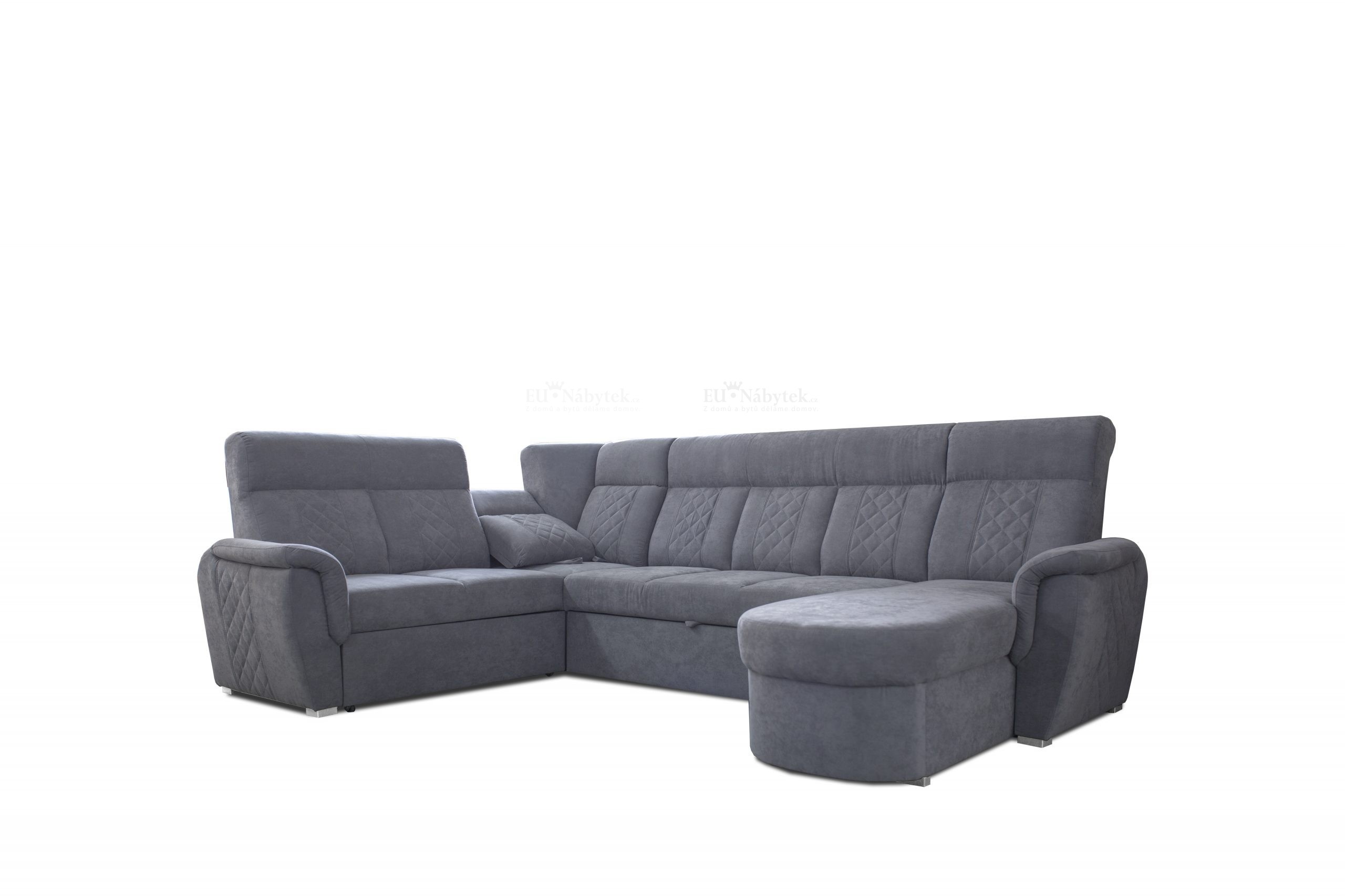 Sedací souprava Bonton je ideální pro ty, kteří ocení komfort a pohodlí. Tkanina vysoké kvality, masivní pevná kostra, kvalitní pružiny spolu s PUR pěnou zaručují komfortní posezení. Disponuje automatickým rozkladem pro příležitostné přespání a úložným prostorem pro uložení lůžkovin formou výsuvného šuplíku, který se nachází v boční části. Spací plocha je 255x120cm. Velkou předností je kvalitní prošití, které dodává sedací soupravě luxusní vzhled. Celkové rozměry sedačky jsou 322x215x110cm. Výška sezení je 48cm. Díky výšce opěrné části 62cm vám sedačka umožňuje pohodlné opření. Kvalitnější ulehnutí pak nabízí dvě sklopné zadní části, díky kterým získáte během pár sekund kvalitní odpočinkové polštáře. Je čalouněná šedou látkou Soro 90.