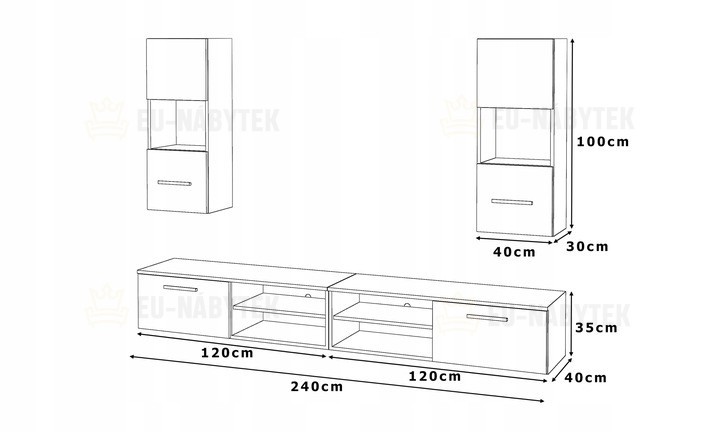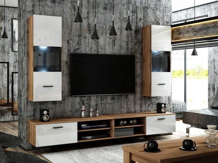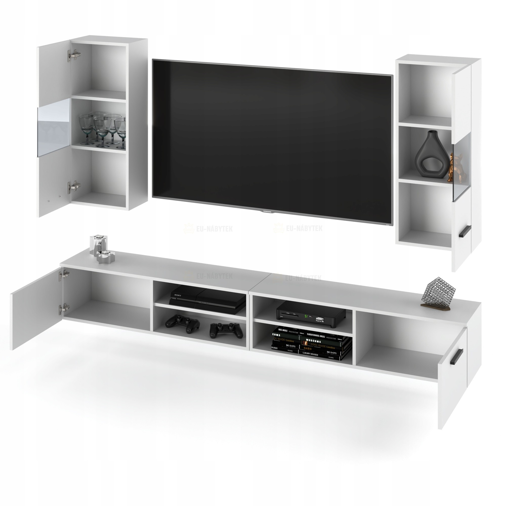 Celá sestava se skládá ze dvou RTV stolků a dvou závěsných vitrín které si můžete
