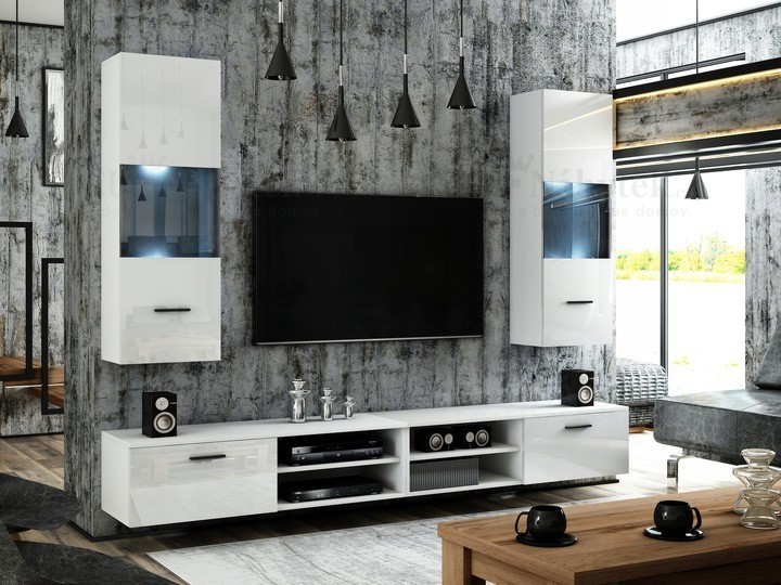 Celá sestava se skládá ze dvou RTV stolků a dvou závěsných vitrín které si můžete