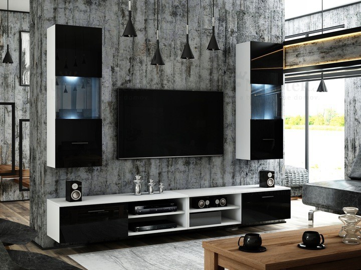 Celá sestava se skládá ze dvou RTV stolků a dvou závěsných vitrín které si můžete