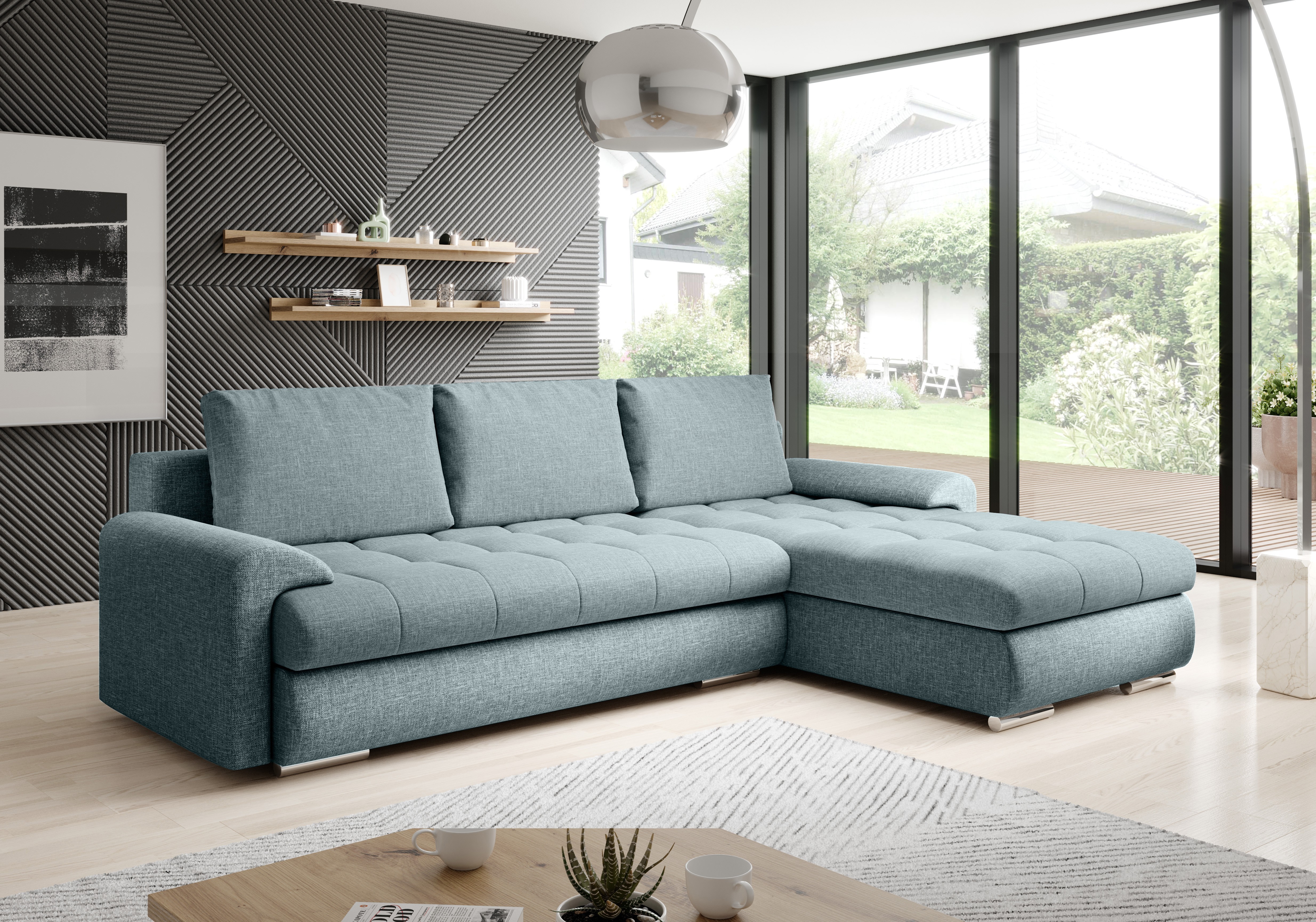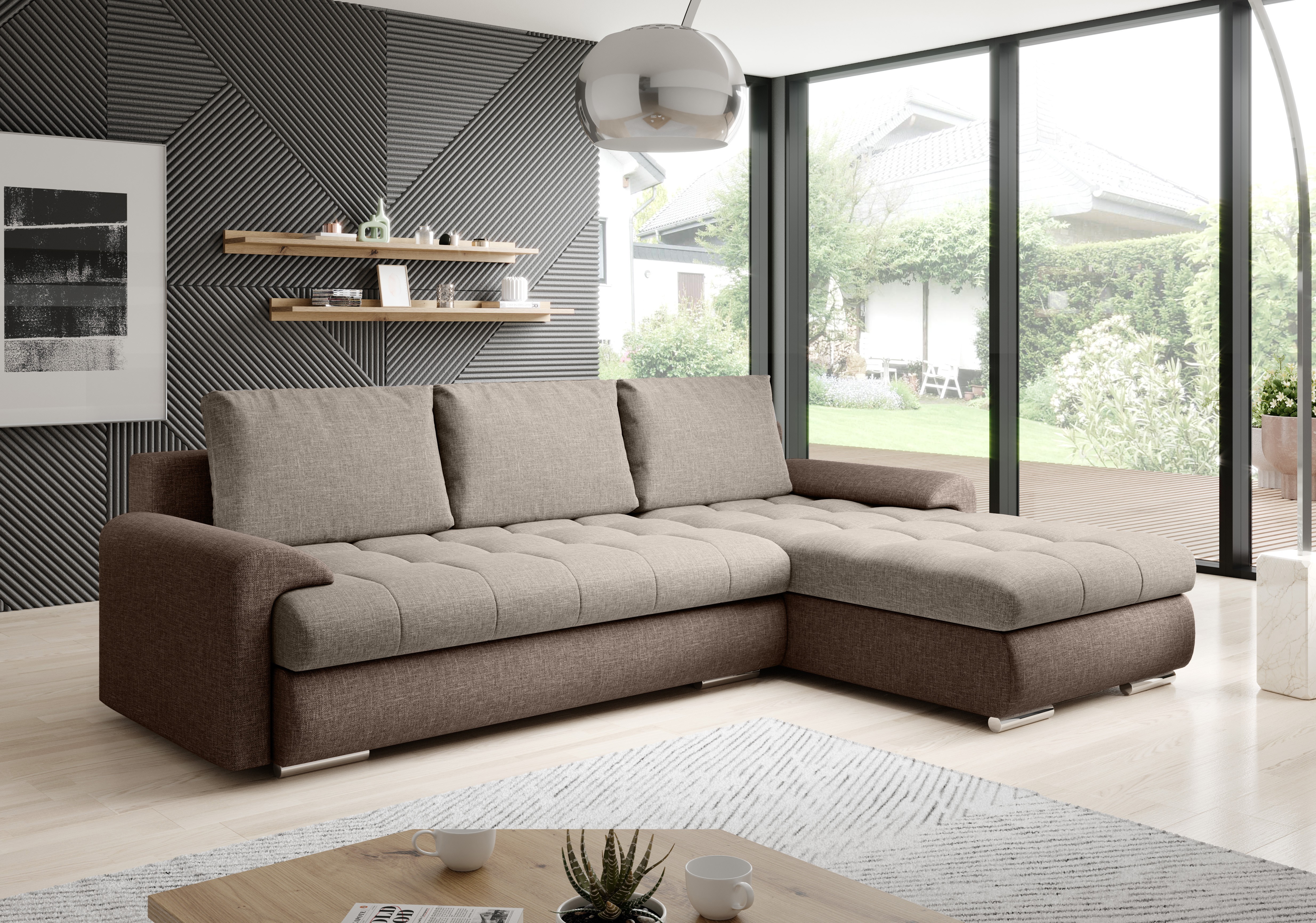 Sedací souprava Tomino je ideální pro ty, kteří ocení komfort a pohodlí. Tkanina vysoké kvality, masivní pevná kostra, kvalitní pružiny faliste spolu s PUR pěnou zaručují komfortní posezení. Disponuje automatickým rozkladem pro příležitostné přespání a úložným prostorem pro uložení lůžkovin, který se nachází v prostřední části po rozložení. Sedačka je celočalouněná, je tedy vhodná do prostoru. Výška sezení je 36 cm. Je čalouněná látkou Berlin 02 a ekokůží Madryt 120. Výrobce ji nabízí hned v několika barevných variantách. Vyberte si tak tu, která Vám nejvíce vyhovuje. Sedačka je univerzální. Nutnost montáže dle vámi zvoleného rohu.