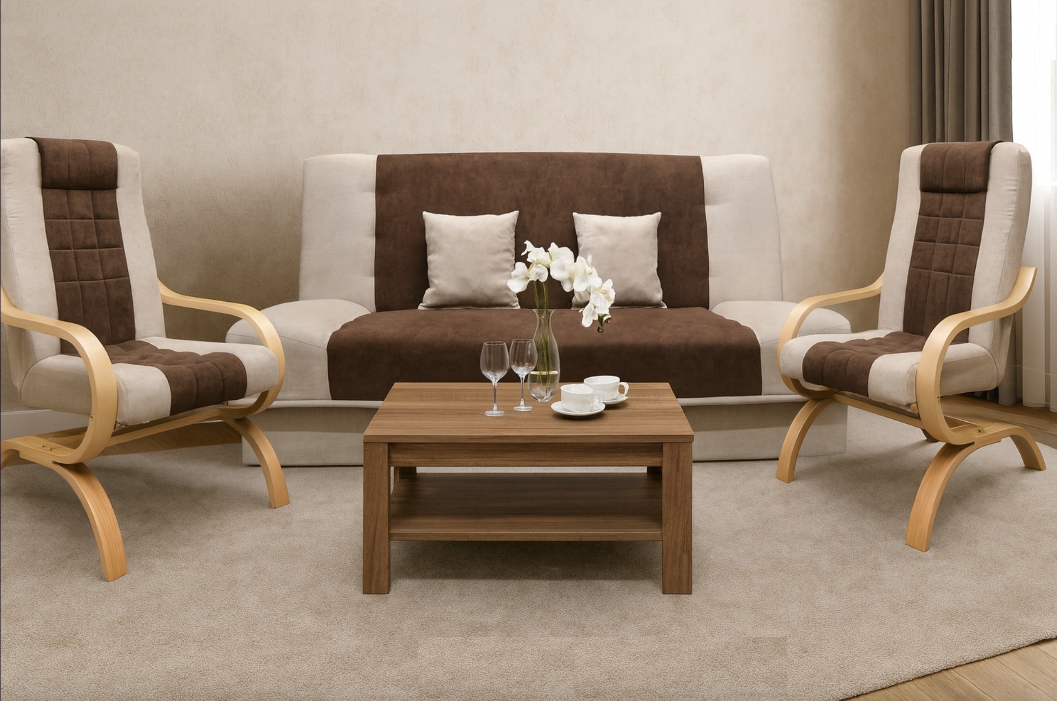 Sedací souprava Gregor 3+1+1, která je velmi praktická a stylová, vhodná nejen do obývacího pokoje v moderním designu. Poskytuje vysoký komfort sezení. Výrobce použil nejkvalitnější materiál včetně dřevené konstrukce. Pohovka vám nabízí možnost přespání včetně úložného prostoru. Rozměry spací plochy jsou 117x194cm. Celkové rozměry pohovky jsou 194x117x86cm. Rozměry křesel jsou 64x75x104cm.