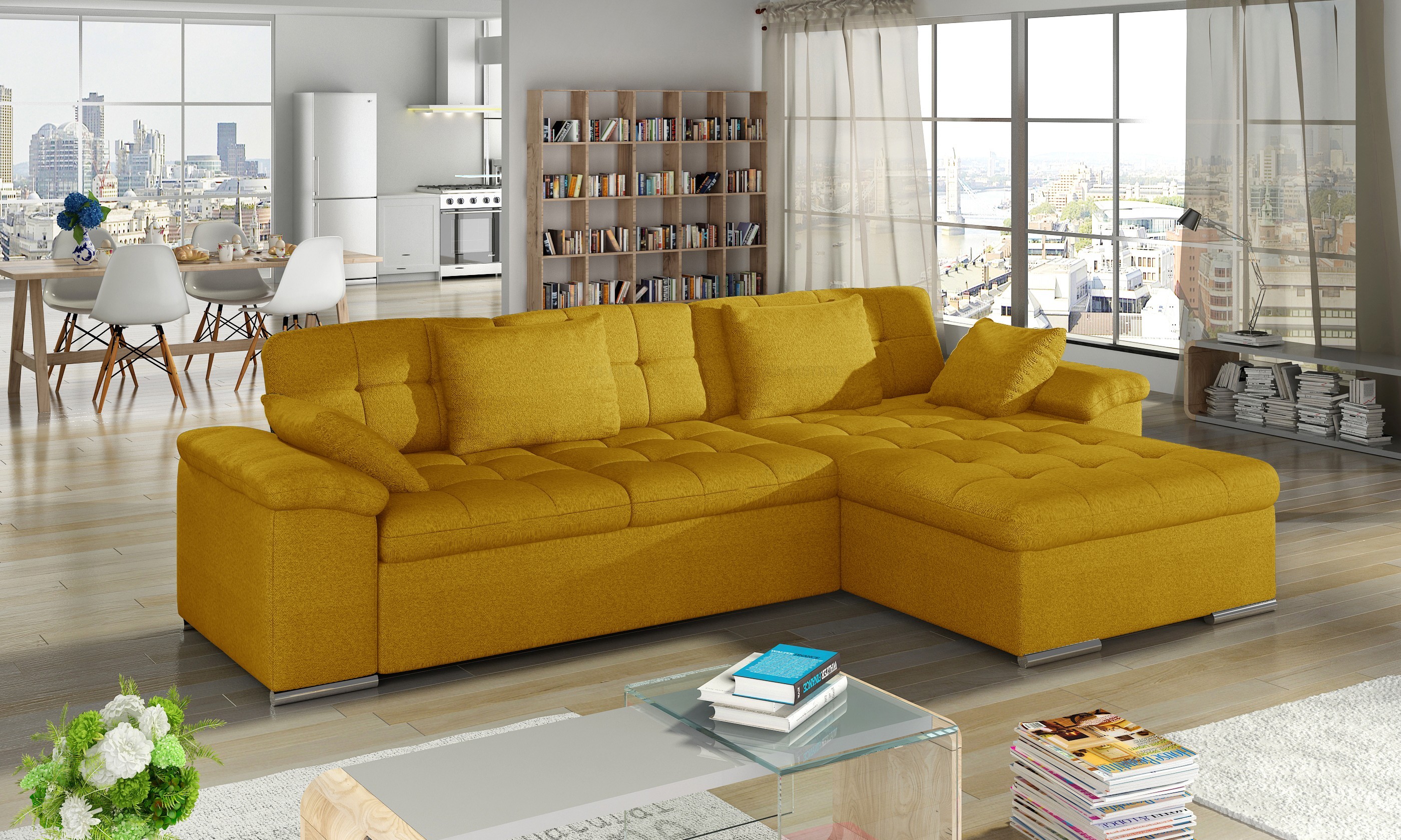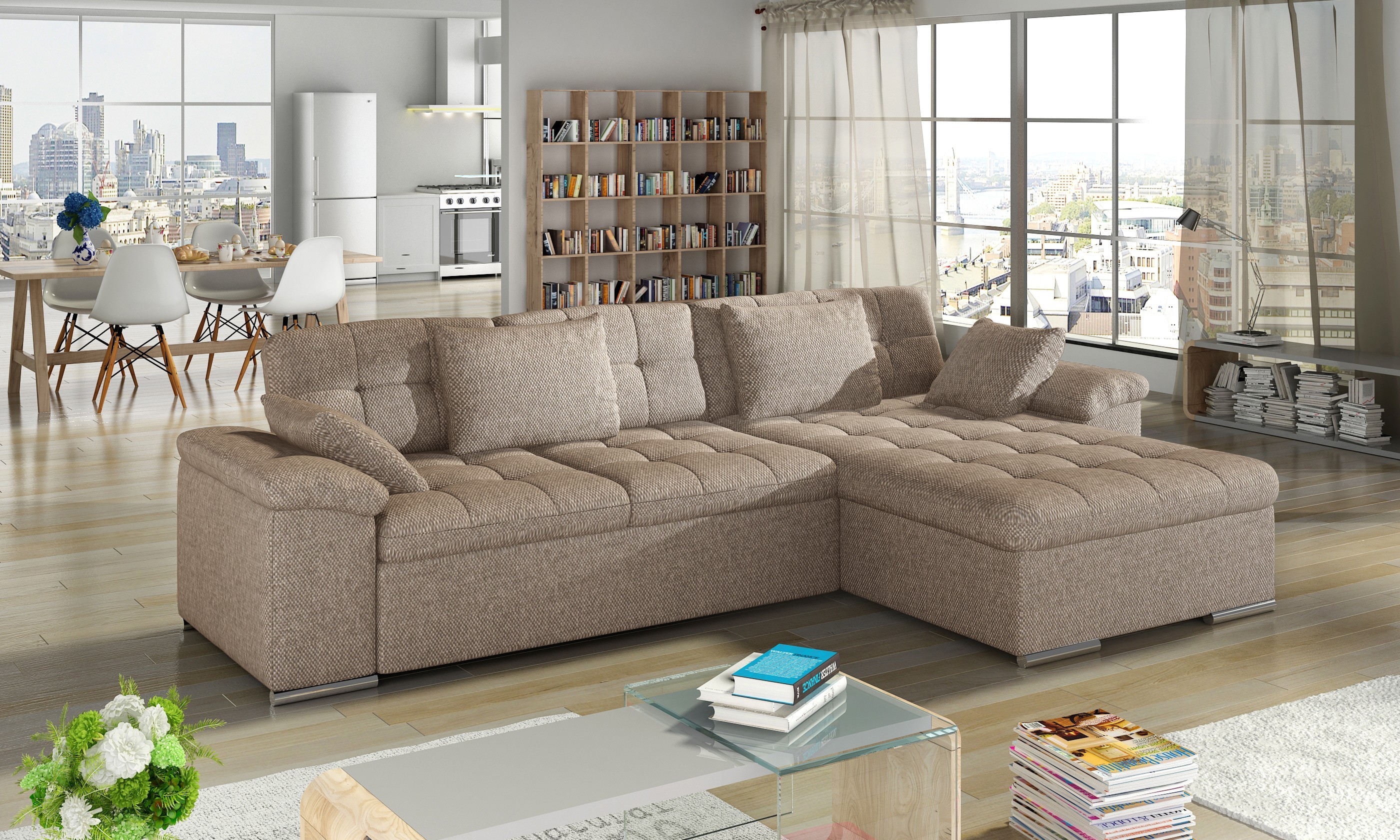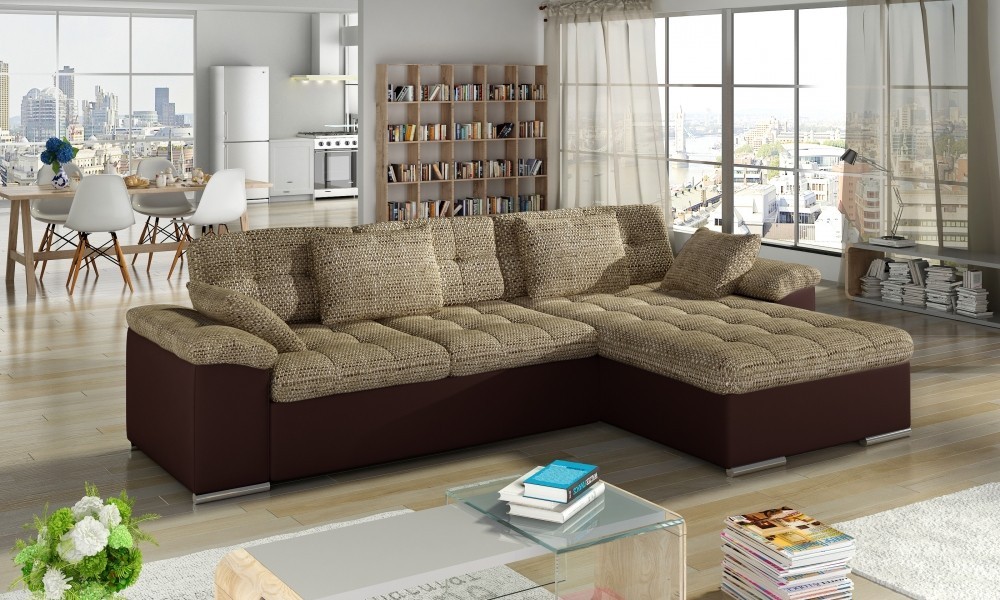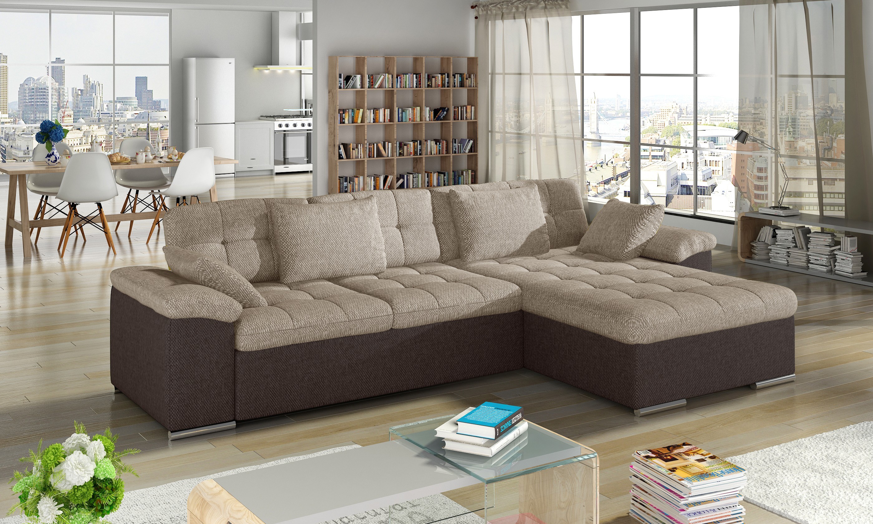 Sedací souprava MIA je ideální pro ty, kteří ocení komfort a pohodlí. Tkanina vysoké kvality, masivní pevná kostra, s kvalitní PUR pěnou T30 zaručují komfortní posezení. Plocha po rozložení 130x228 cm. Sedací souprava má také praktický úložný prostor. Nožky jsou z kovu, délka je 10cm. Barevné provedení - Sawana 09 a Inari 94. V nabídce i v jiném barevném provedení včetně taburetu ve stejných látkách.