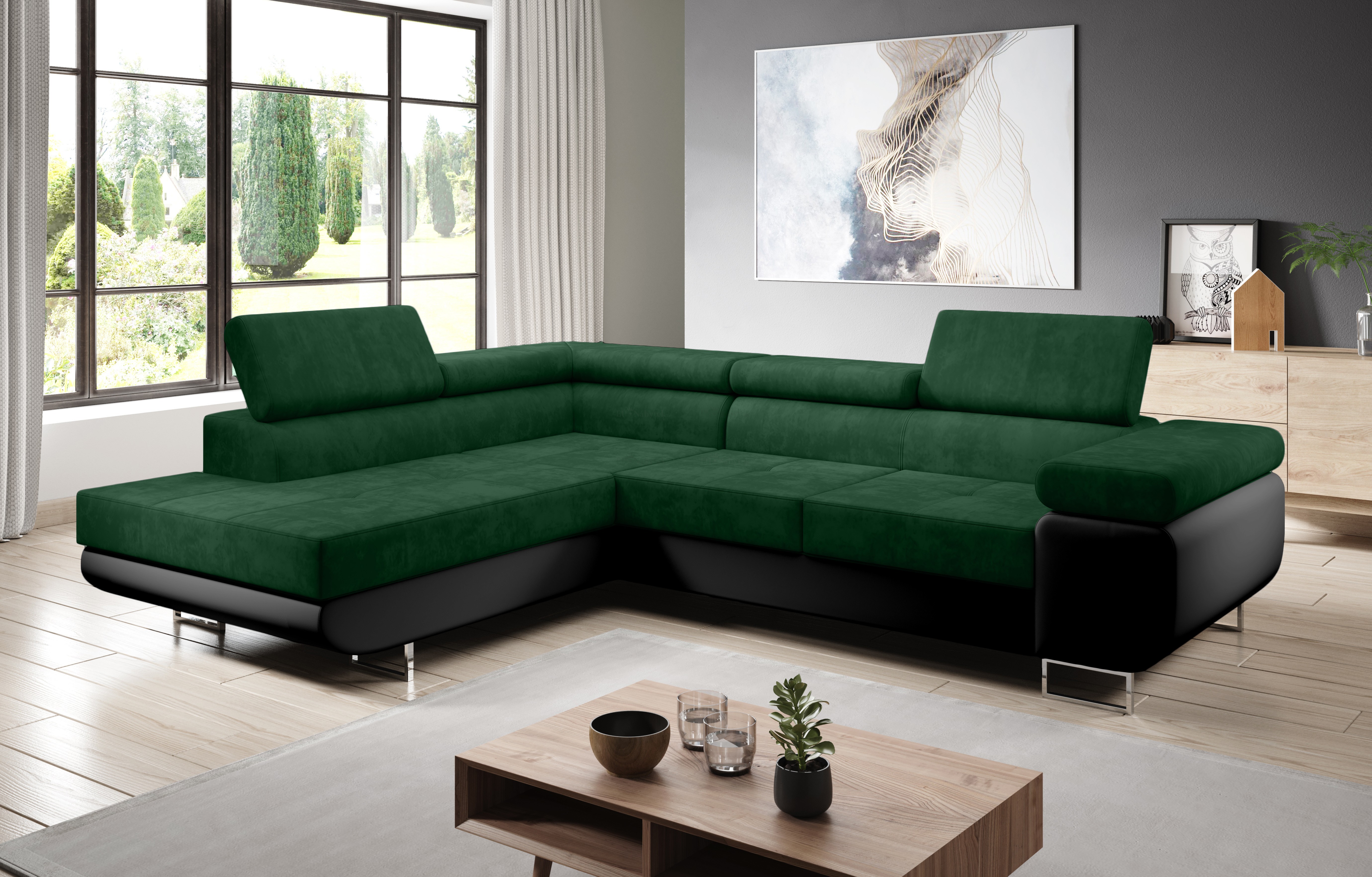 Rozkládací rohová sedačka ALBERTO DELUXE zelená